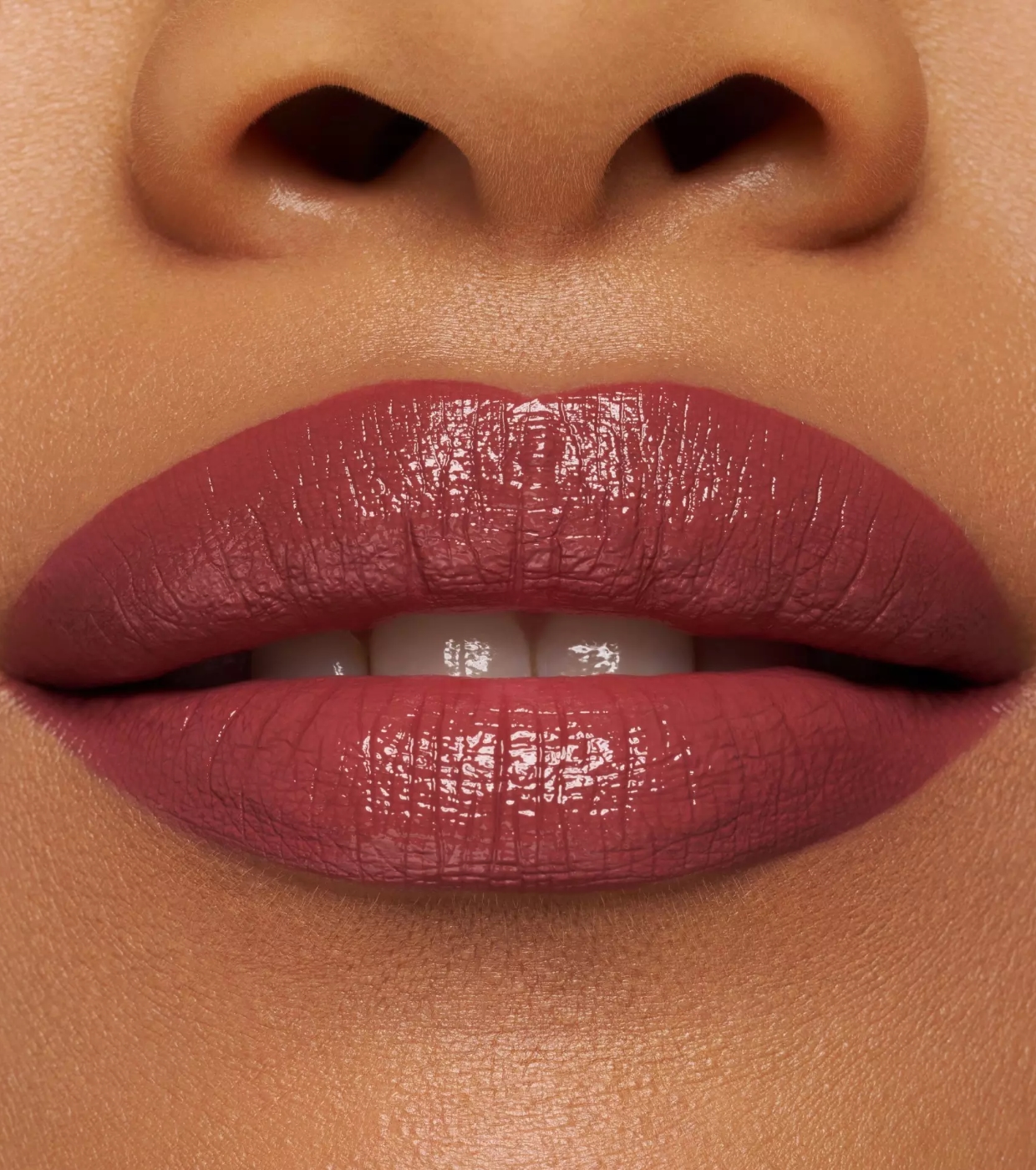 La sua formula cremosa e altamente pigmentata offre una copertura totale in una sola passata, lasciando le labbra morbide e confortevoli per ore.