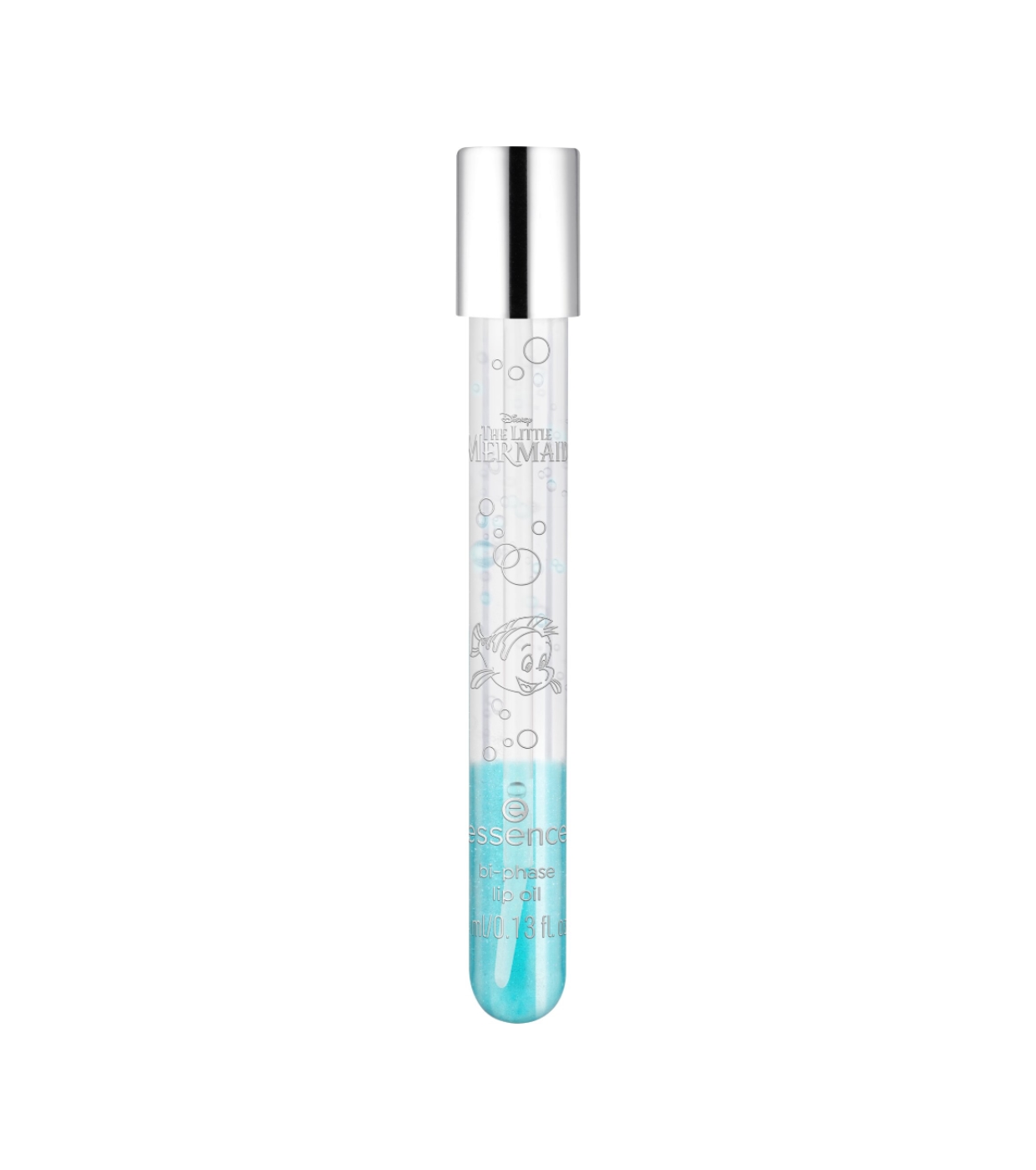 Regala alle tue labbra un tocco magico ispirato all'oceano con l' olio labbra bifasico della collezione La Sirenetta di essence x Disney .