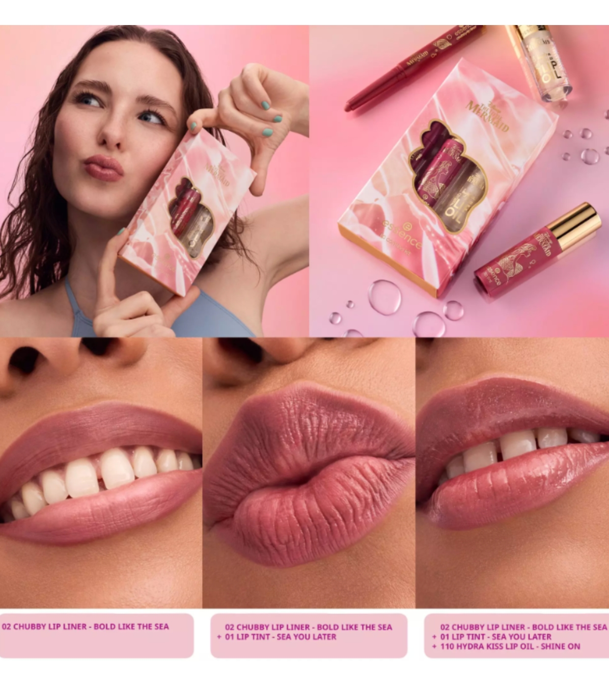 Ottieni labbra irresistibili con il set labbra essence , ispirato al magico universo de The Little Mermaid .