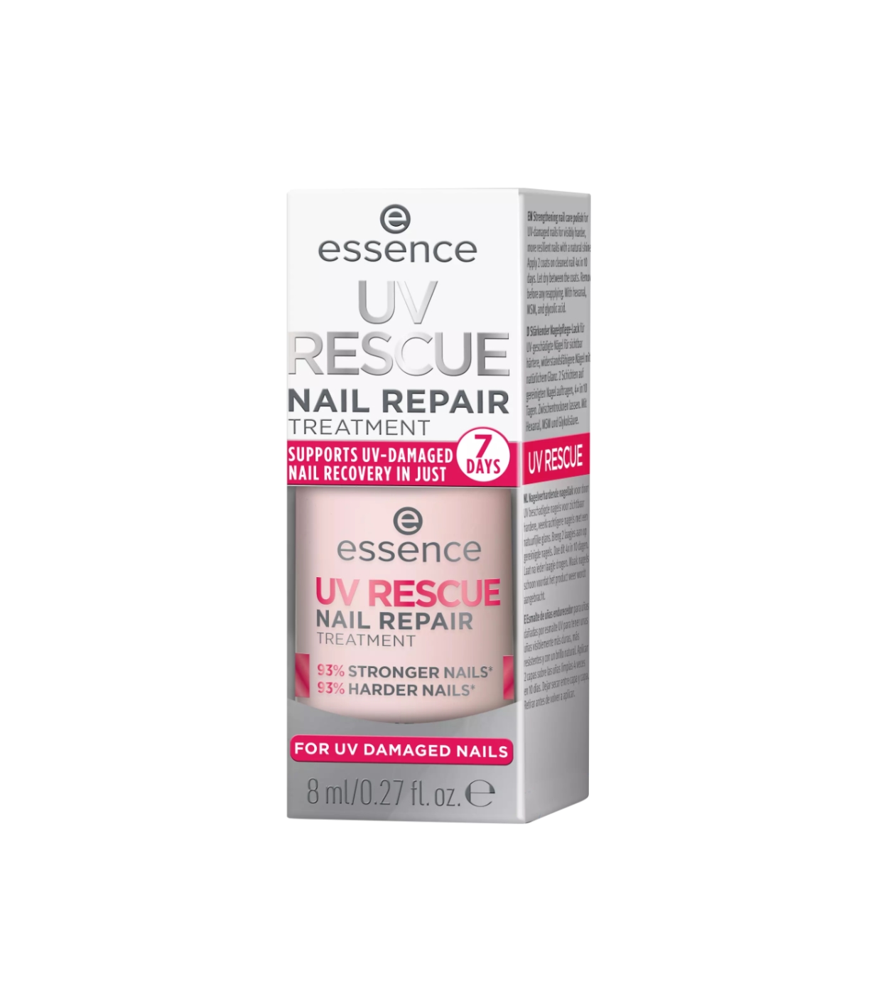 Ripristina la forza e la lucentezza delle tue unghie con il trattamento riparatore UV Rescue di Essence , il trattamento riparatore ideale dopo la manicure con gel UV.