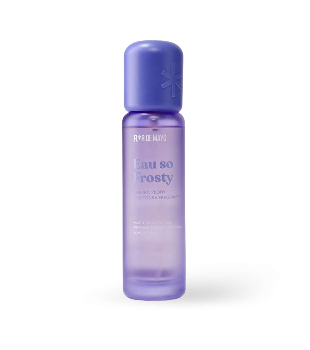 Rinfresca, profuma e prenditi cura della tua pelle e dei tuoi capelli con l'elegante profumo per capelli e corpo Frosty di Flor de Mayo , una fragranza serena e sofisticata con una base muschiata che avvolge delicatamente i sensi.