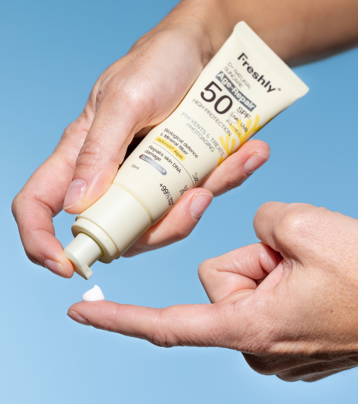 La sua tecnologia avanzata combina una protezione solare ad ampio spettro con principi attivi rigeneranti che aiutano a riparare rughe e macchie solari, migliorando la qualità e l'età fisiologica della pelle.