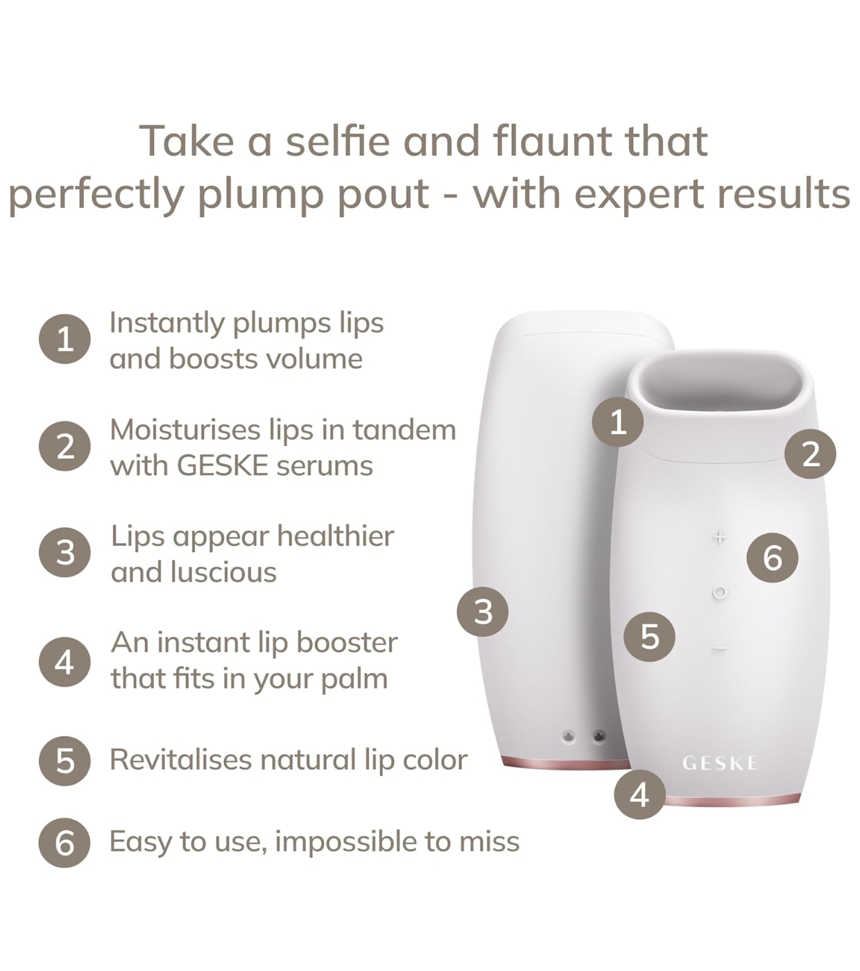 Il dispositivo Lip Volumizer & Booster di Geske è un dispositivo di bellezza all'avanguardia, progettato per mantenere le labbra più piene, definite e dall'aspetto più giovane giorno dopo giorno.