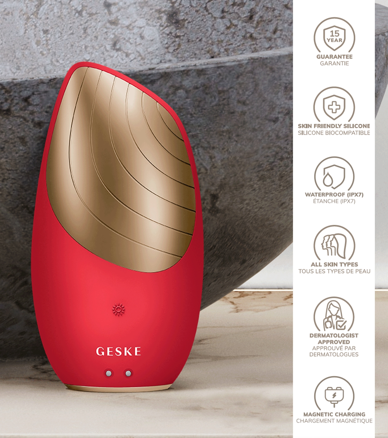 SmartAppGuided™ Sonic Thermo Facial Brush di Geske è un detergente viso, una spazzola termica e un massaggiatore tutto in uno.