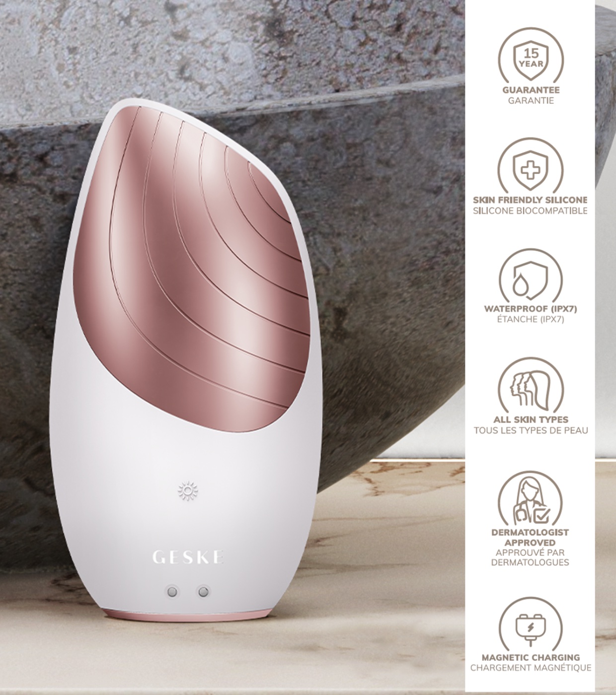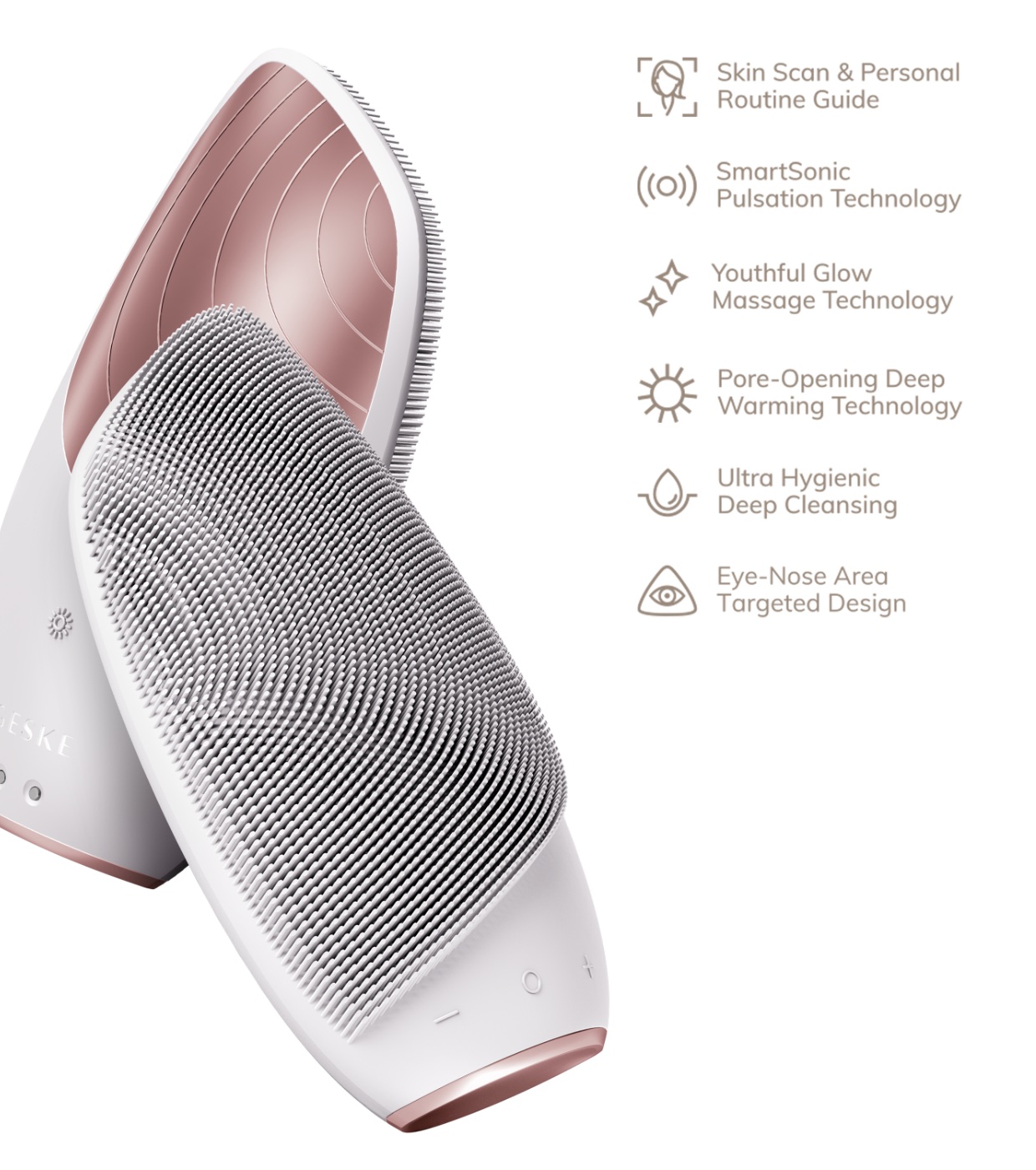 Spazzola per la pulizia del viso e massaggiatore Sonic Thermo 6 in 1 - Bianco oro rosa