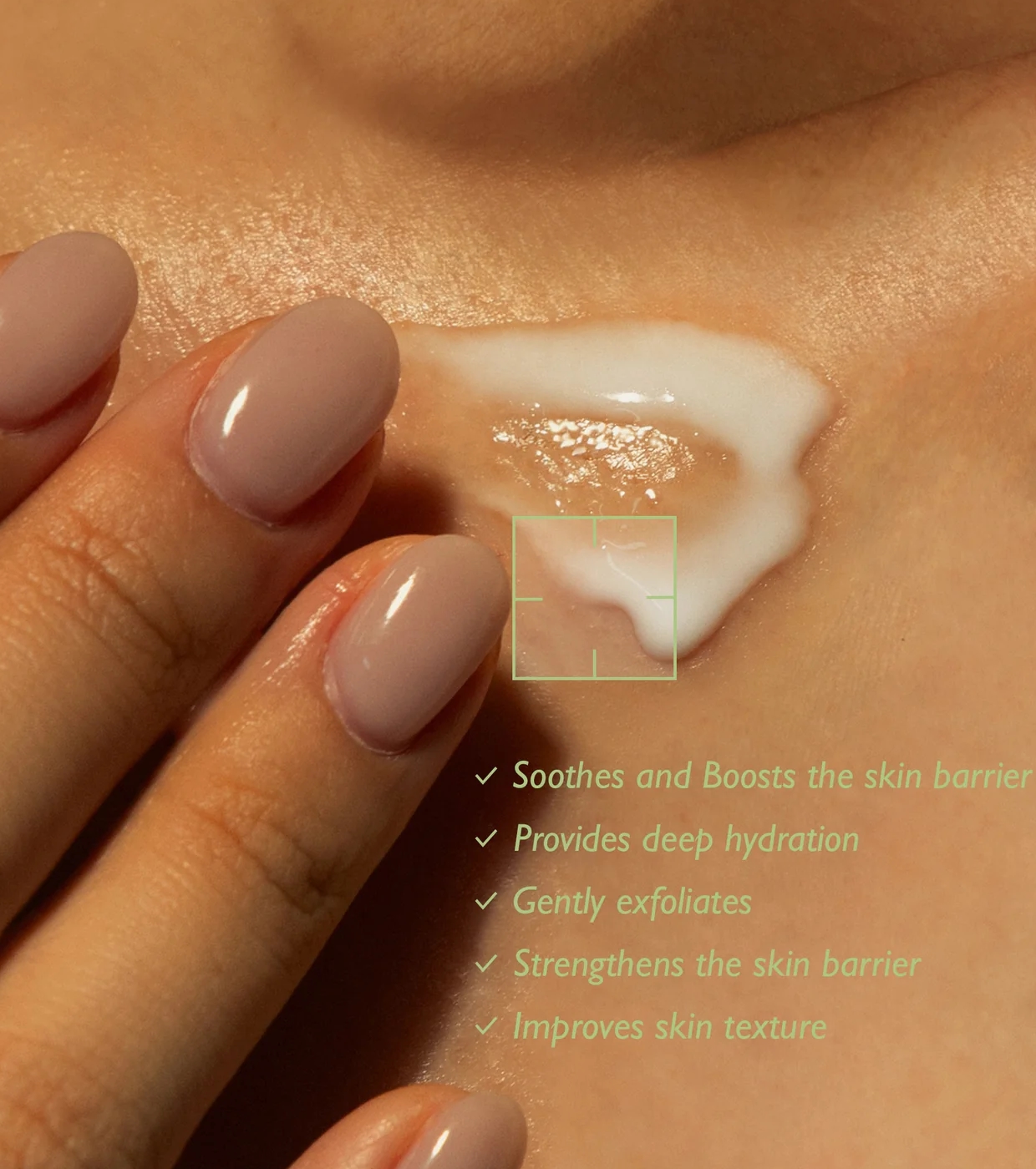 Fin dal primo utilizzo, la pelle risulta più morbida, lenita, idratata e luminosa in modo naturale.