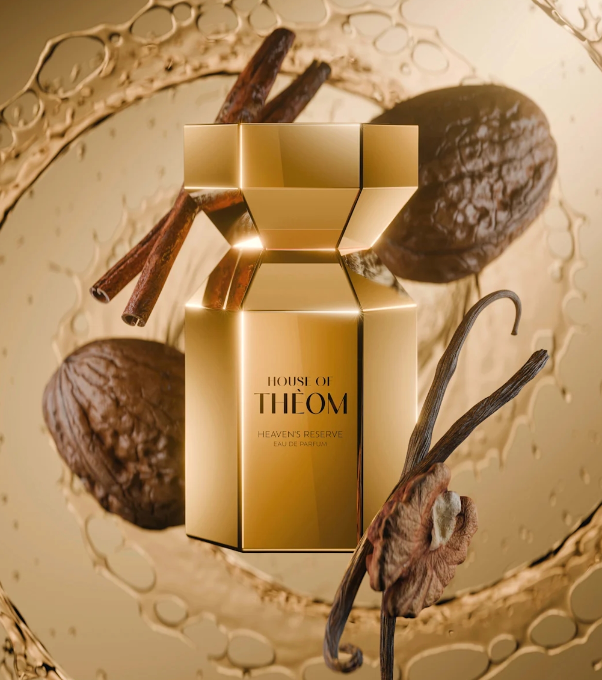 Senti il lusso e il calore di Heaven’s Reserve Eau de Parfum di House of Thêom , una fragranza speziata e avvolgente che fonde note gourmand con sfumature floreali e ambrate.
