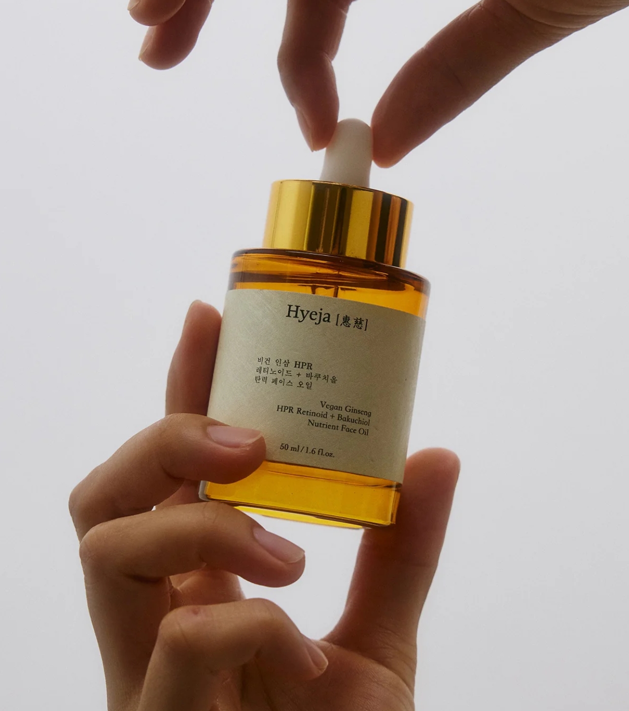 Hyeja's Vegan Ginseng HPR Retinoid + Bakuchiol Nutrient Face Oil è un olio vegano per il viso formulato per trattare in modo efficace e delicato i primi segni dell'invecchiamento.