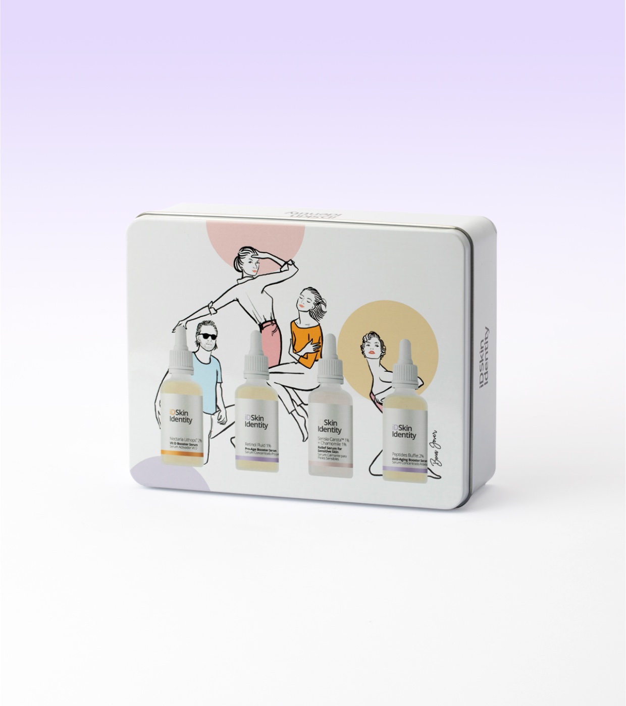 Nuova routine per la cura della pelle matura da ID Skin Identity con quattro best-seller del marchio, presentati in un design unico e originale creato dall'artista Beca Jover.