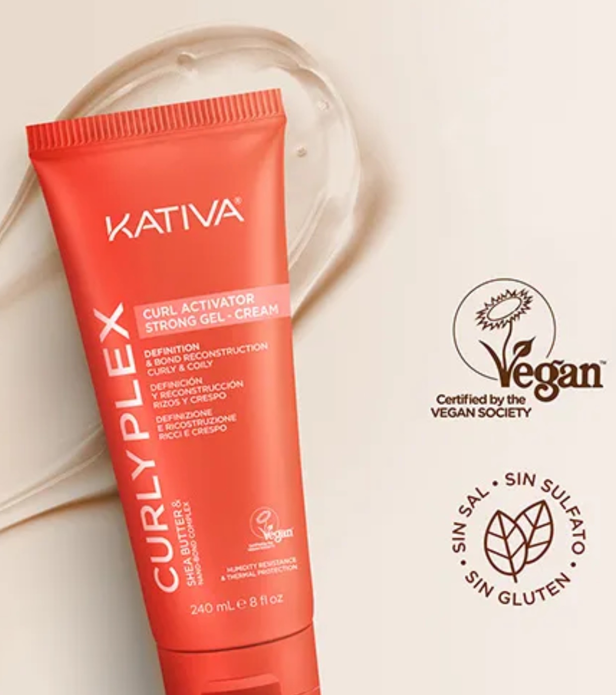 L'attivatore di ricci Strong Gel-Cream di Kativa è studiato per controllare e definire all'istante i ricci senza appesantire o appesantire i capelli, anche in condizioni di elevata umidità.