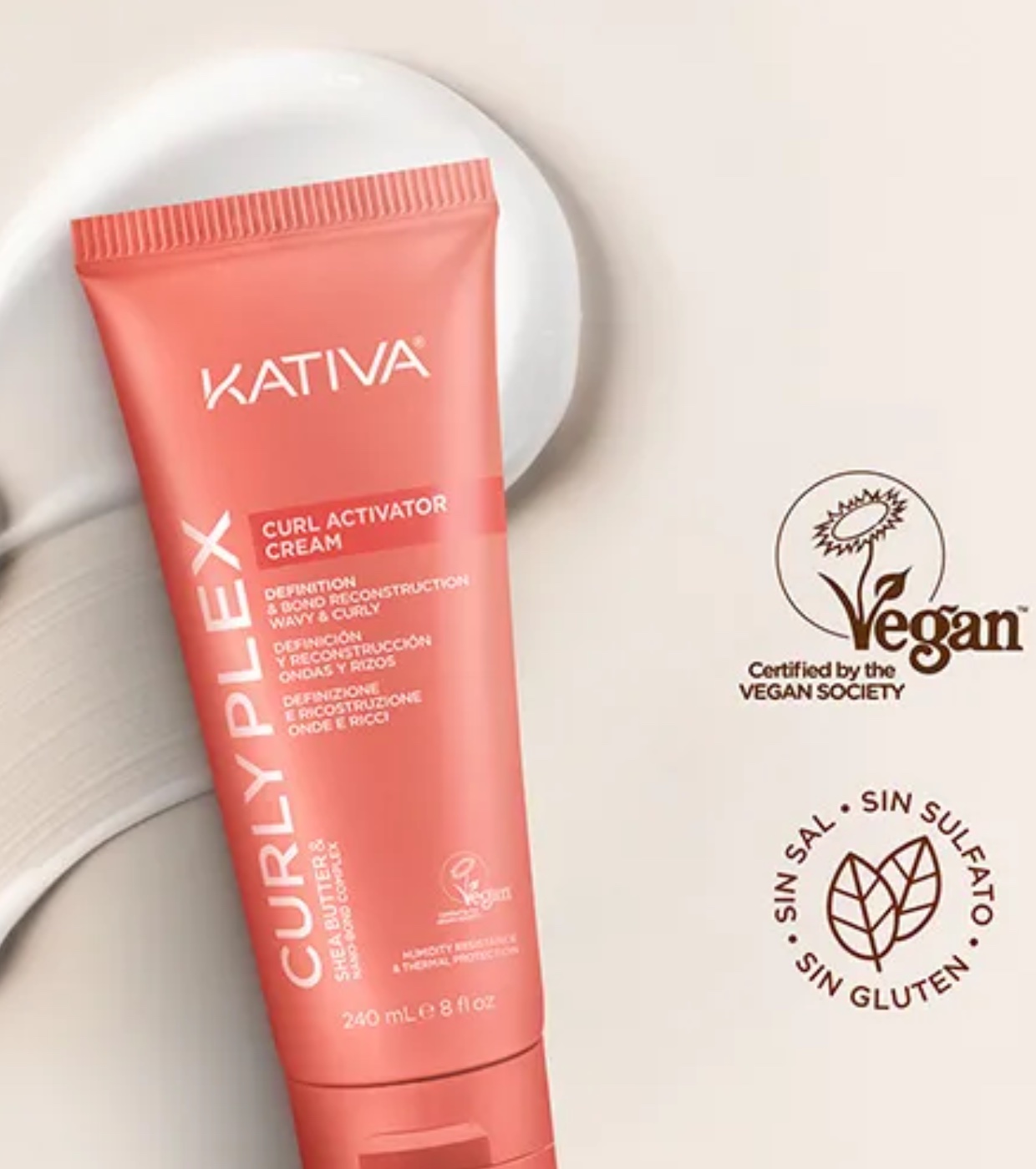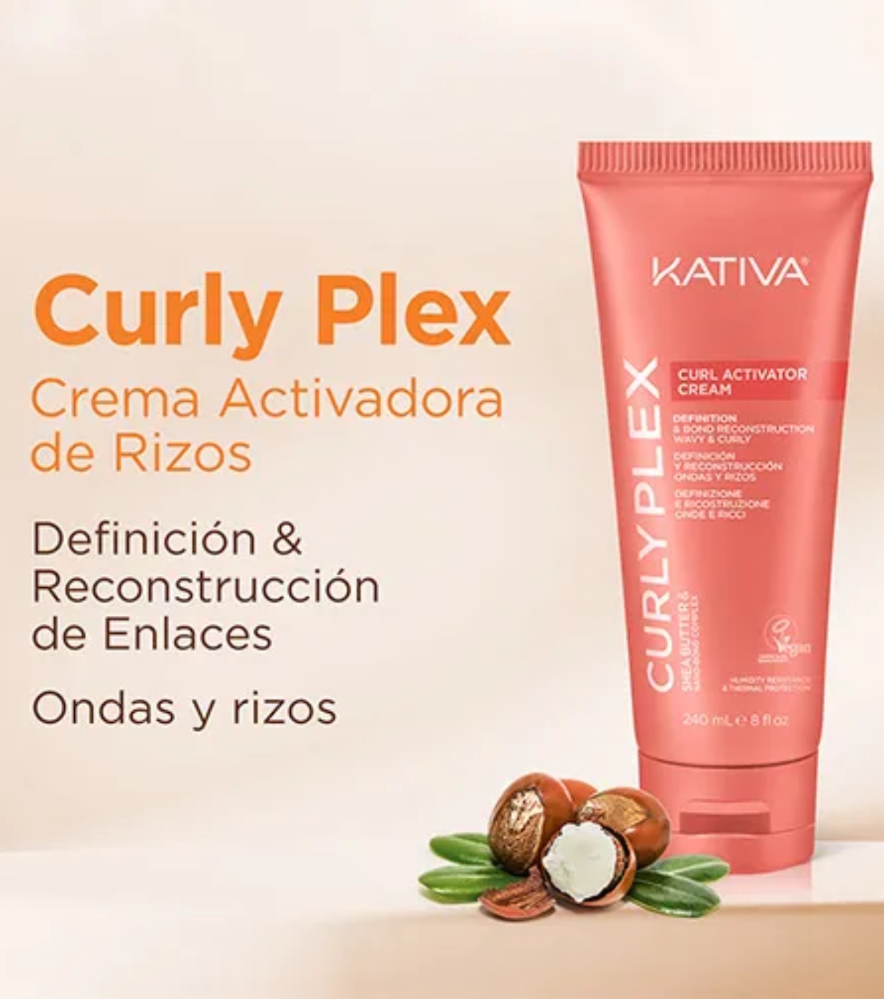 La crema attivatrice di ricci Curly Plex di Kativa è formulata per controllare e definire all'istante i ricci senza appesantire o appesantire i capelli, anche in condizioni di elevata umidità.