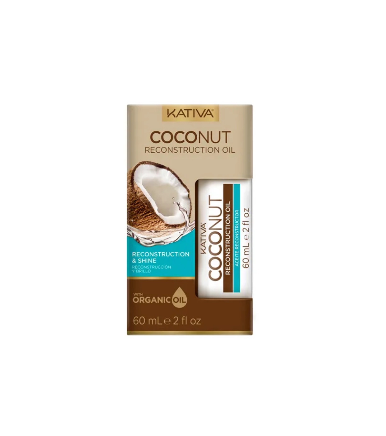 L'olio ricostruttivo al cocco di Kativa è un olio riparatore per capelli formulato per ricostruire e rivitalizzare i capelli danneggiati, restituendo loro morbidezza, lucentezza e un aspetto sano.