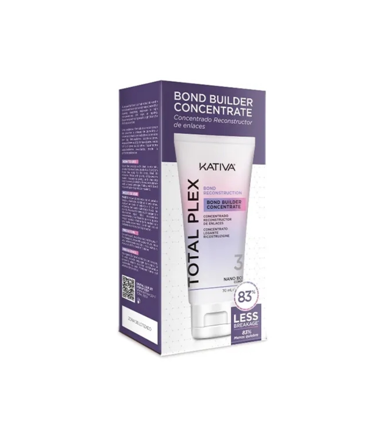 Il concentrato ricostruttivo Total Plex di Kativa è il primo passo di un sistema di riparazione professionale bifasico, formulato per invertire efficacemente i danni ai capelli causati da tinte, decolorazioni, strumenti termici, raggi UV e dal passare del tempo.