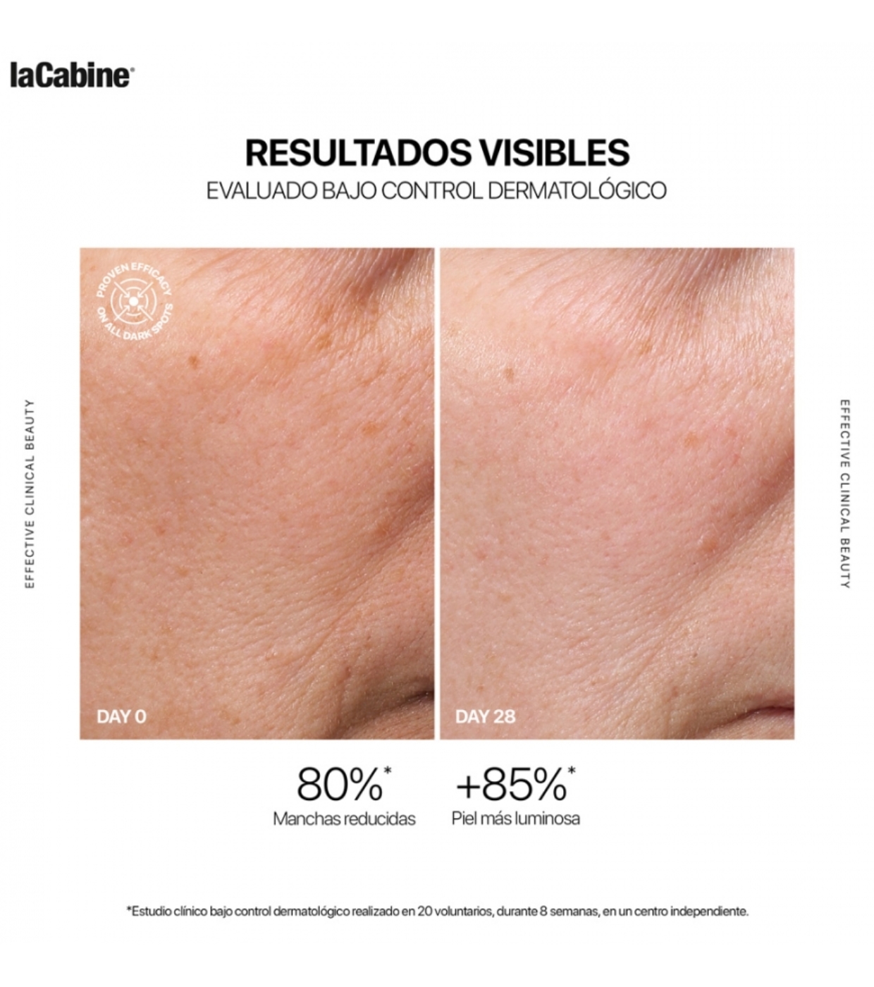 La sua formula avanzata, con tre dei principi attivi depigmentanti più studiati, agisce in sinergia per attenuare le macchie ormonali, solari, post-infiammatorie (acne) e quelle causate dall'invecchiamento.
