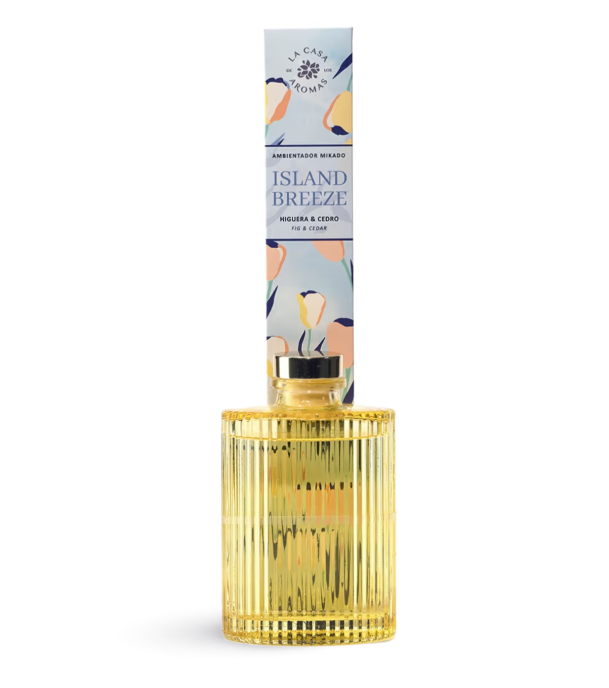 Brandy Island Breeze di La Casa de Aromas si distingue per il suo design in vetro scanalato in un'intensa tonalità di giallo, un pezzo decorativo moderno ed energico che dona colore e personalità a qualsiasi spazio.