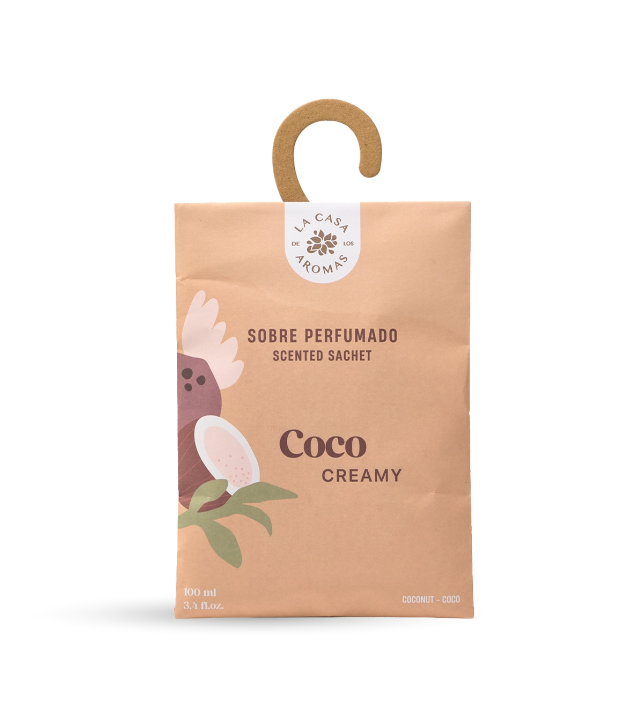 Questa bustina profumata per la casa di La Casa de los Aromas avvolge il tuo spazio con un aroma profondamente dolce e irresistibile, in cui il cremoso cocco diventa il protagonista assoluto.