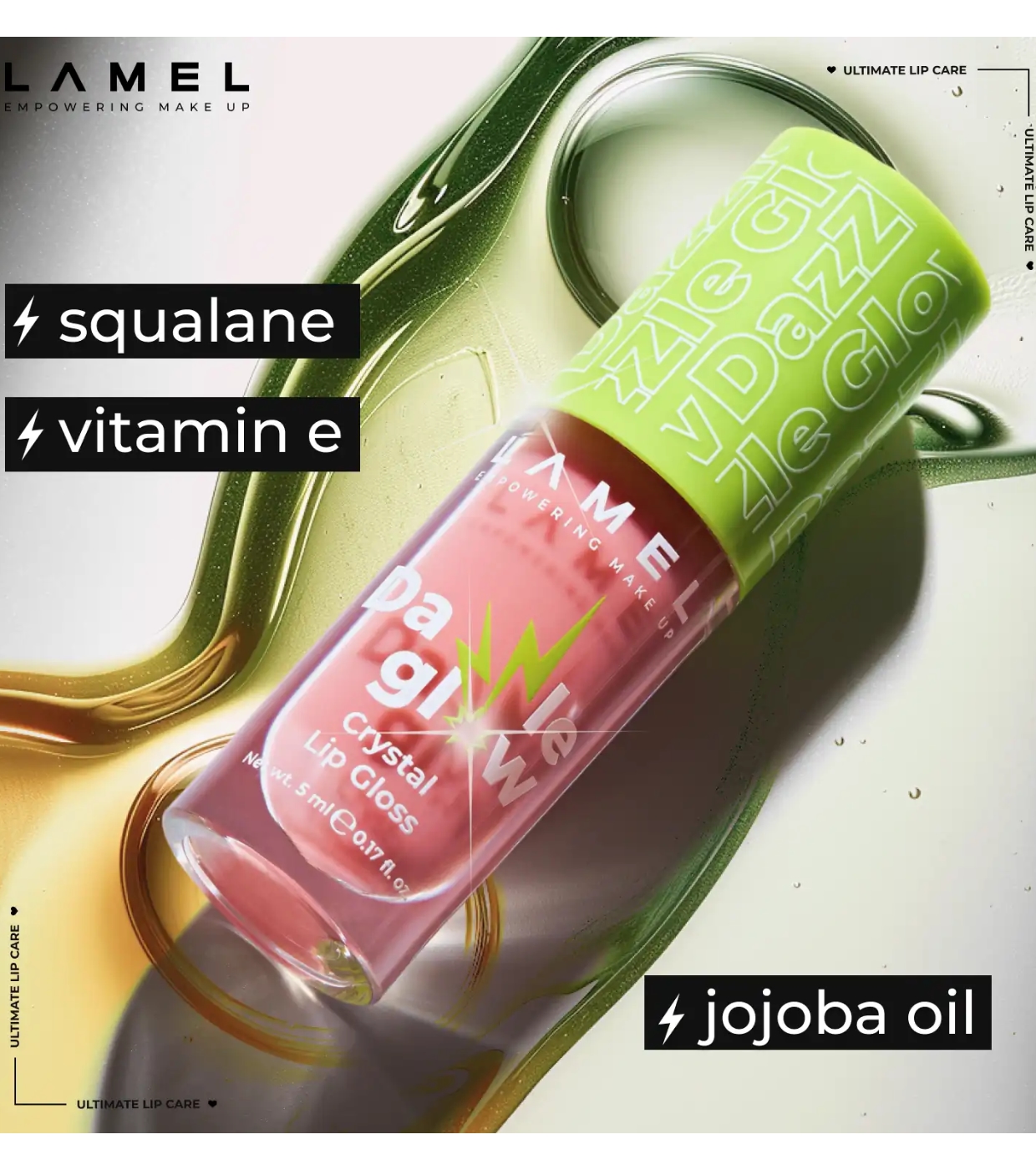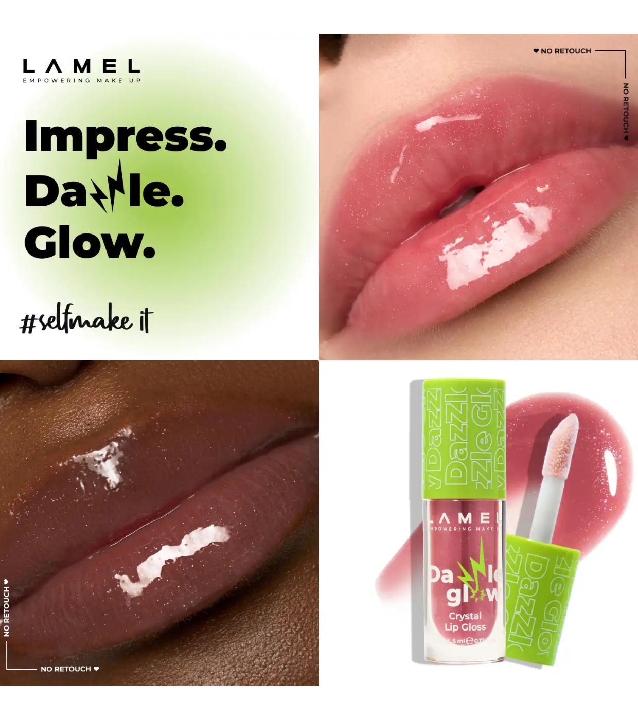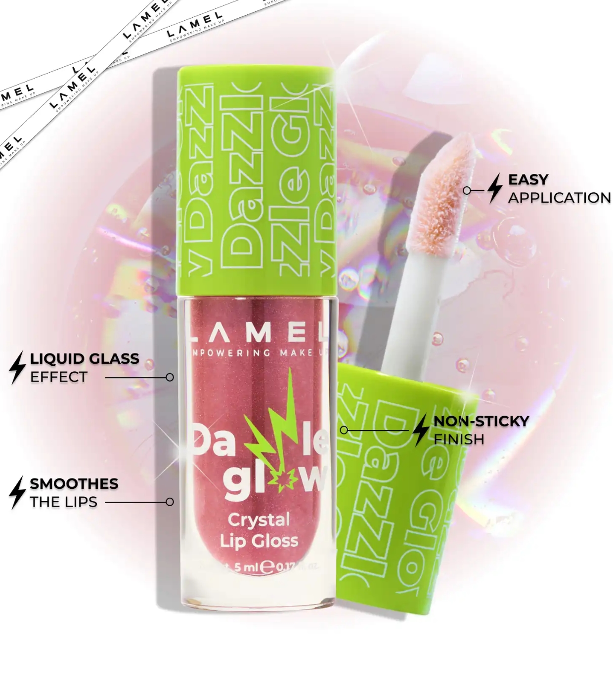 Preparatevi a labbra irresistibili con il Dazzle Glow Crystal Lip Gloss di Lamel , un lucidalabbra che impreziosisce all'istante qualsiasi look.