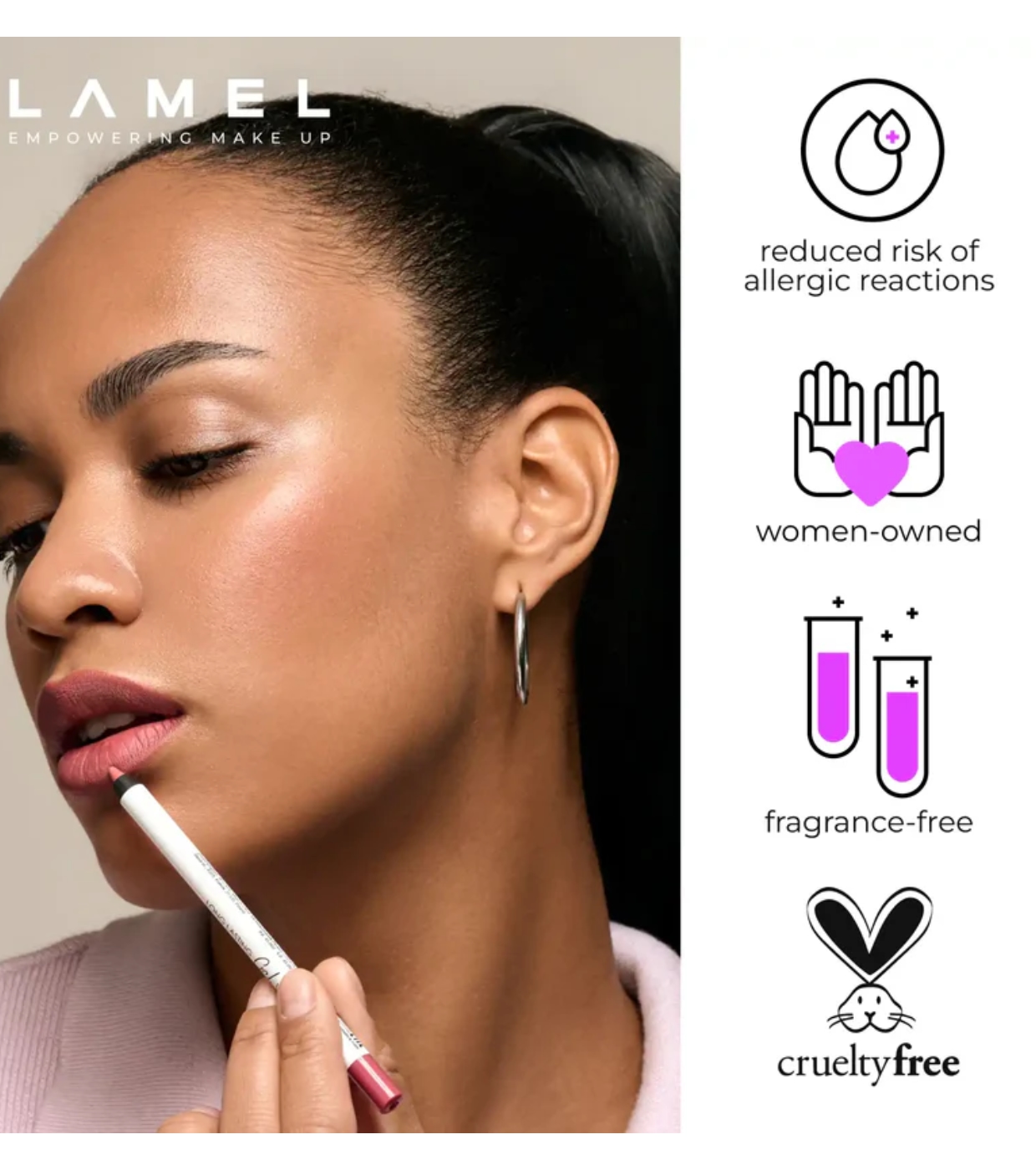 La matita labbra in gel a lunga tenuta di Lamel ha una delicata consistenza in gel che garantisce un'applicazione uniforme e precisa, rimanendo al suo posto per tutto il giorno.