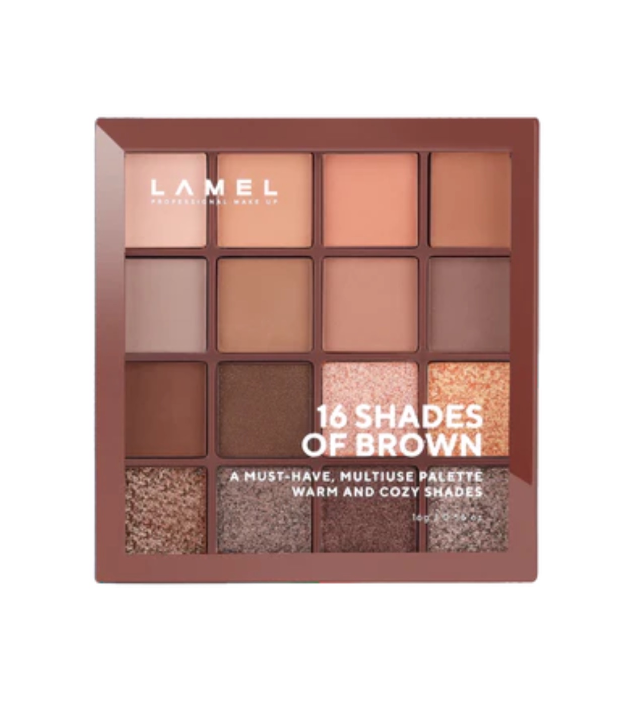 Una palette di 16 tonalità di marrone di Lamel pensata per un trucco occhi completo. Adatta sia per un trucco base che per quello serale.