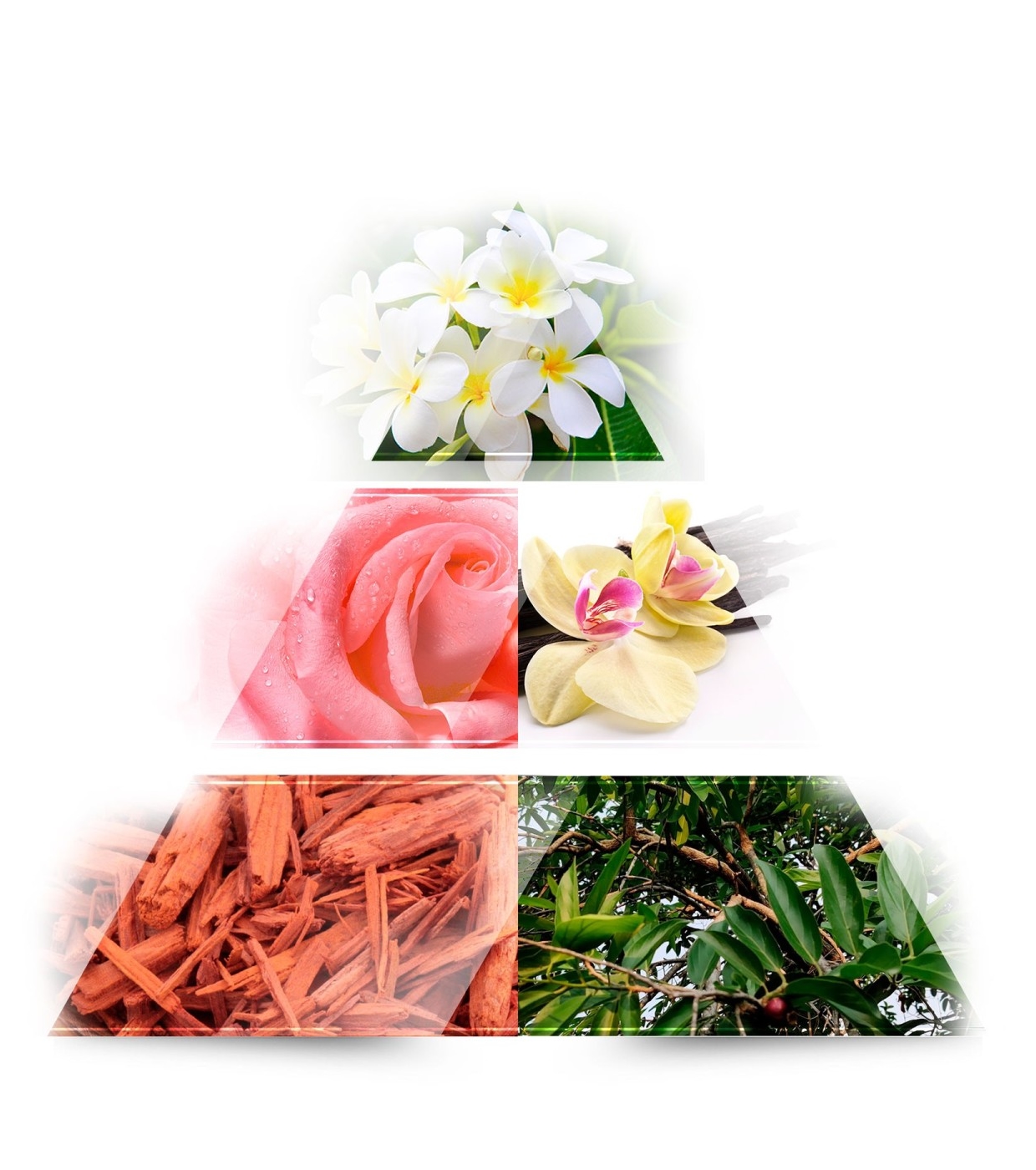 La sua apertura rivela un delicato e luminoso accordo floreale con tiaré, ylang-ylang e mimosa, che apporta un tocco caldo e leggermente dolce.