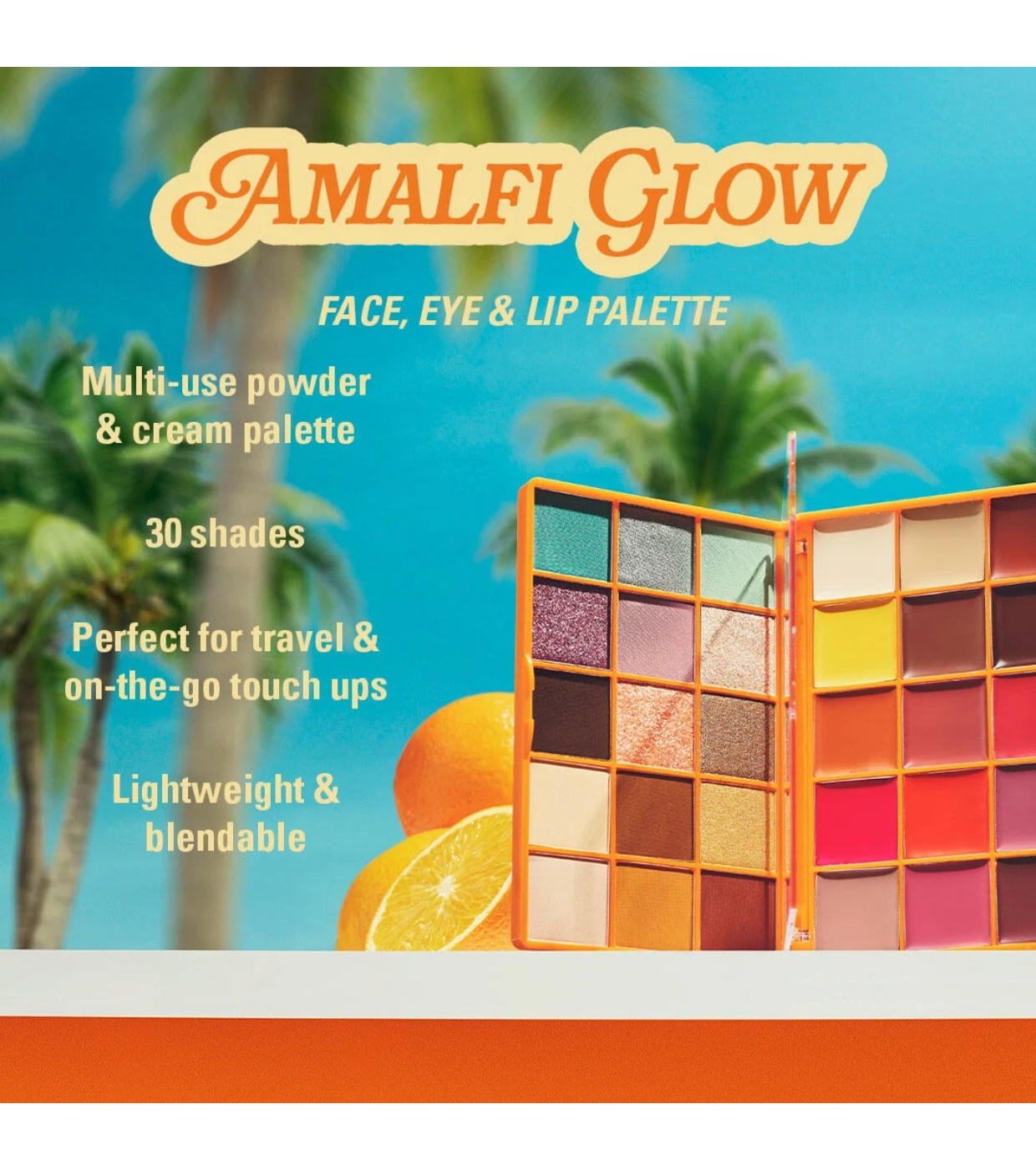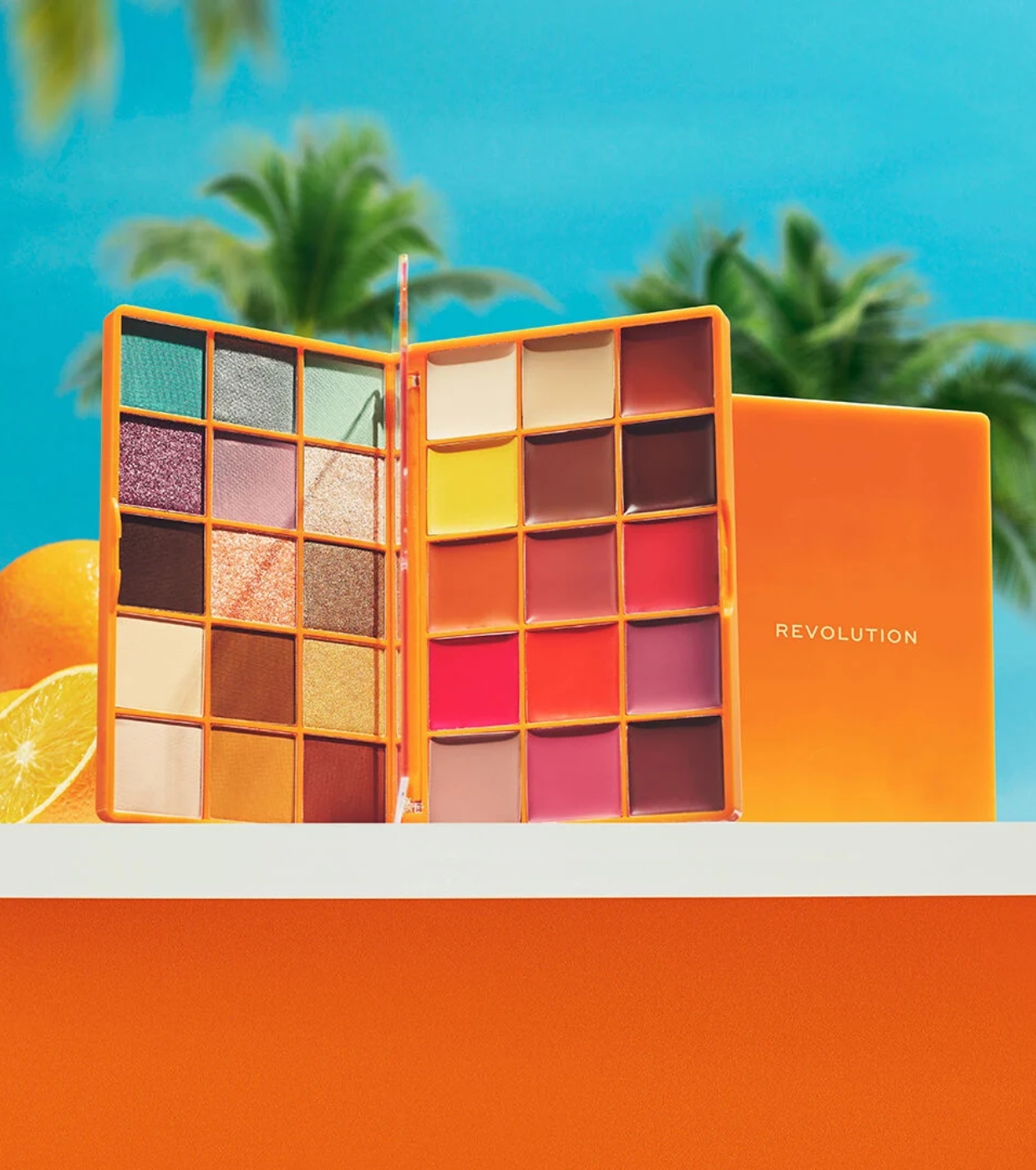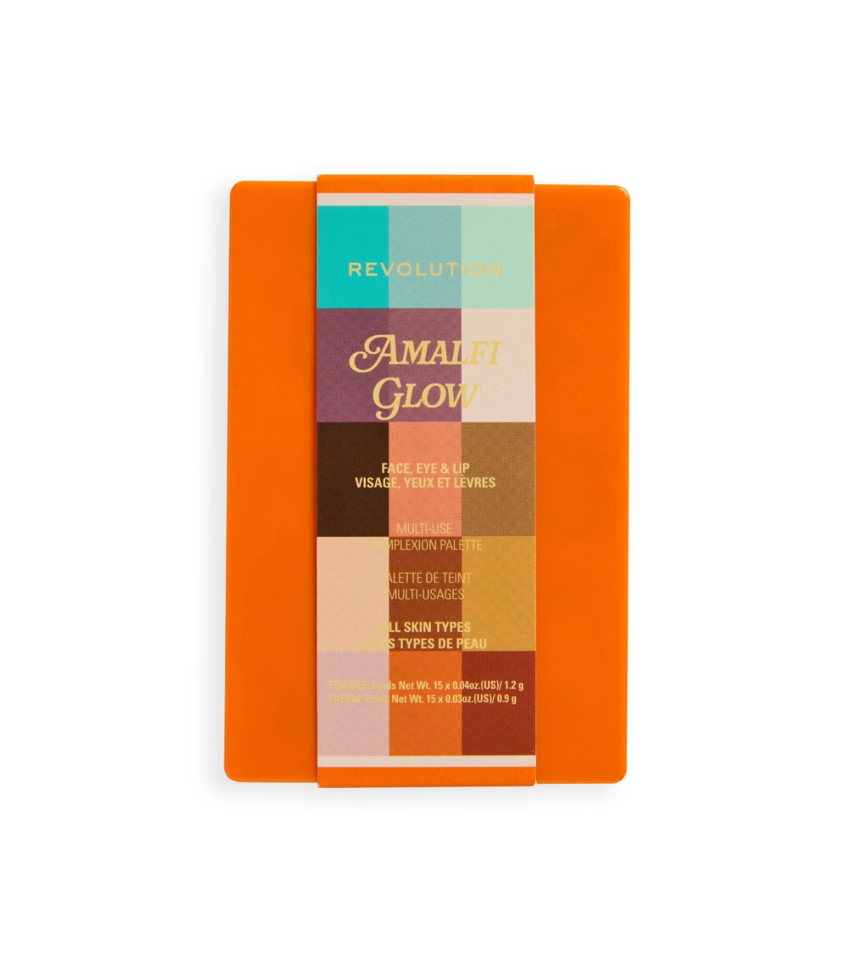 Immergiti nelle vibranti tonalità dell'estate con la palette multiuso per viso, occhi e labbra Amalfi Glow di Revolution..