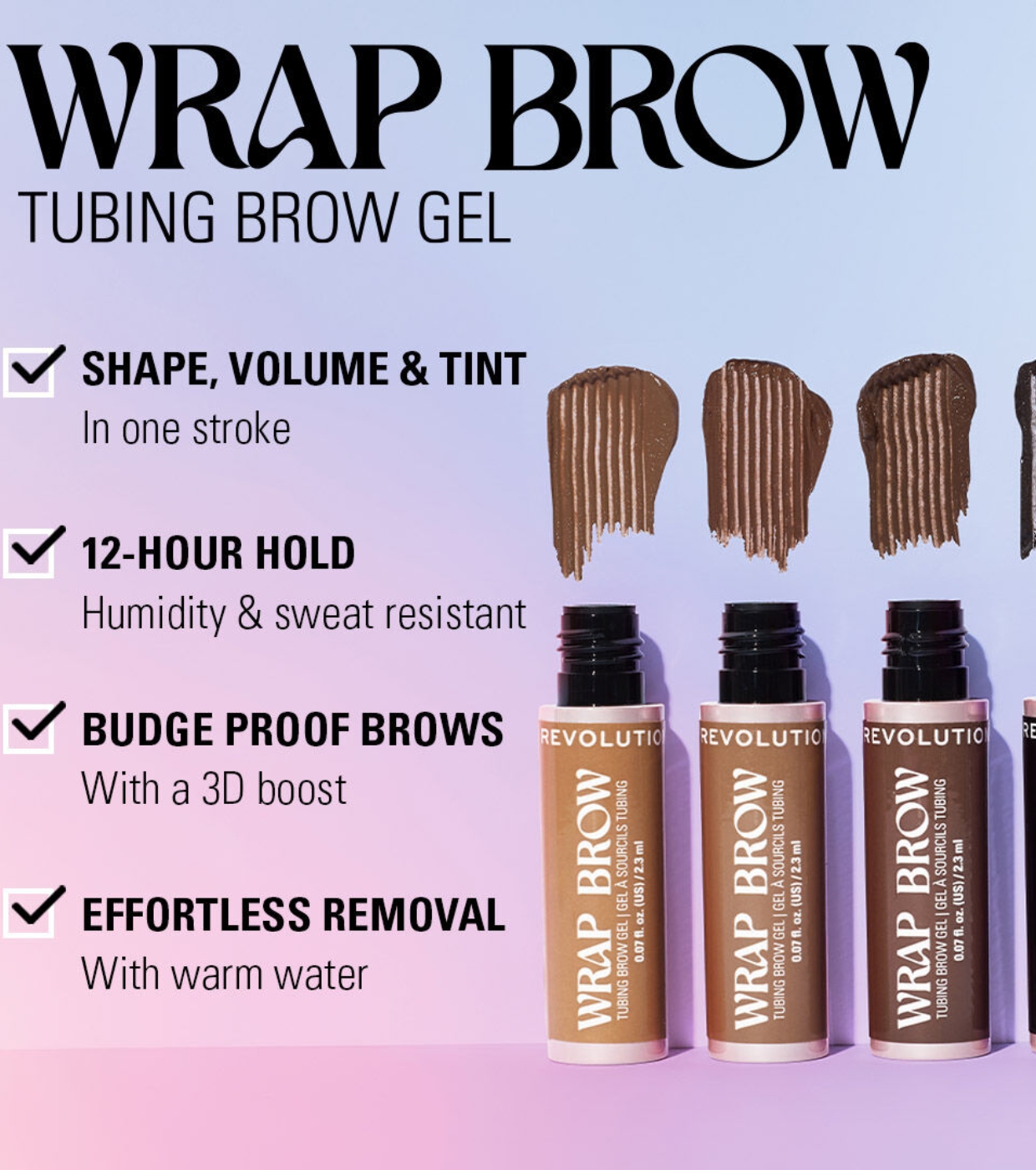 Definisci, fissa e colora le tue sopracciglia in un solo gesto con il gel per sopracciglia Wrap Brow di Revolution , un gel innovativo con tecnologia a tubicini che avvolge ogni singolo pelo per creare un effetto 3D più denso, definito e naturale.
