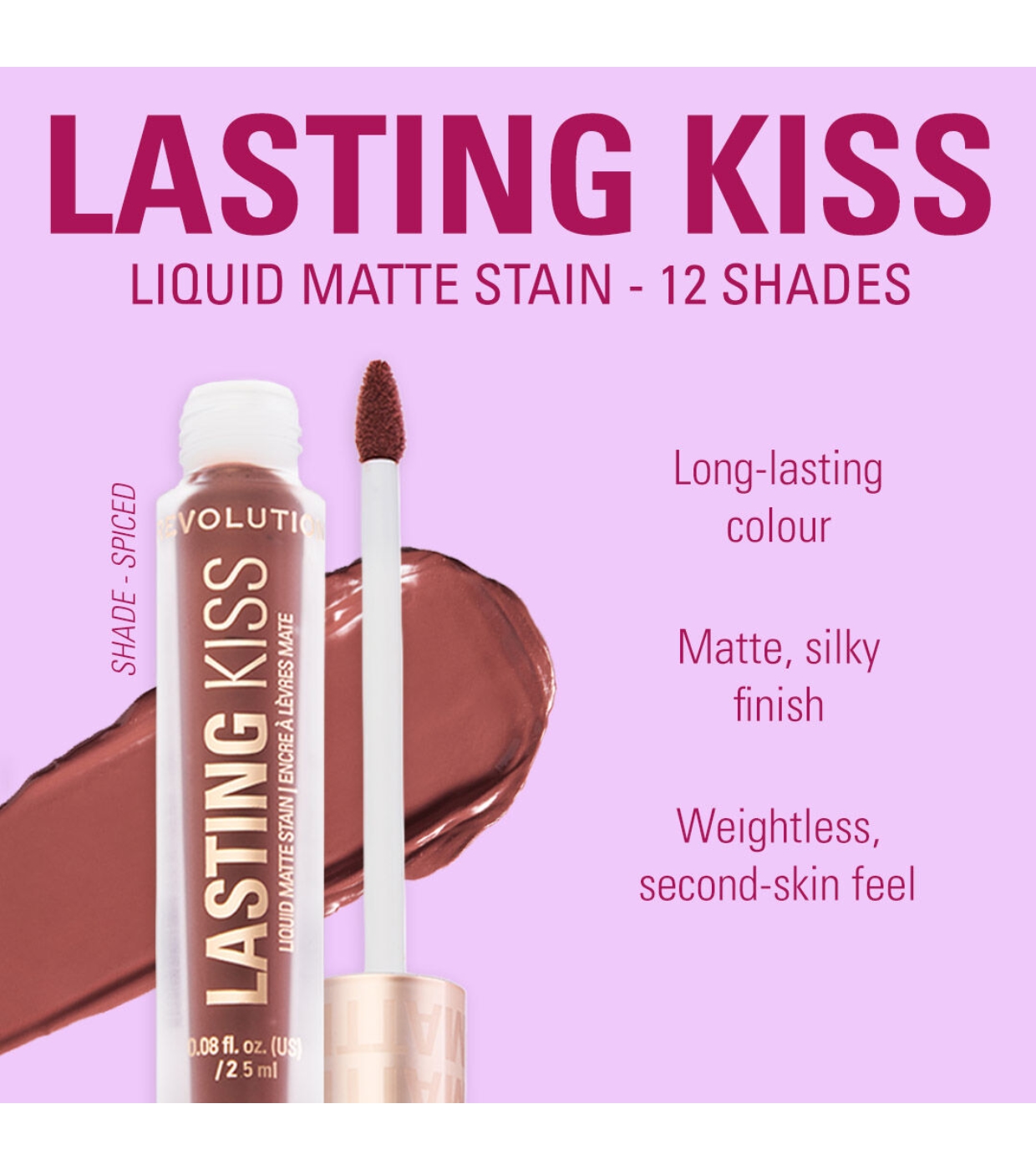 Scopri il rossetto liquido opaco Lasting Kiss di Revolution , che unisce colore intenso e comfort in una formula leggera effetto seconda pelle.