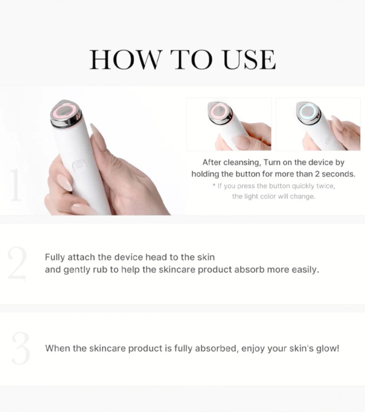 Progettato in un formato compatto e leggero, combina vibrazioni soniche, calore delicato e microcorrenti per stimolare la circolazione, migliorare l'elasticità e favorire una pelle più soda e luminosa.