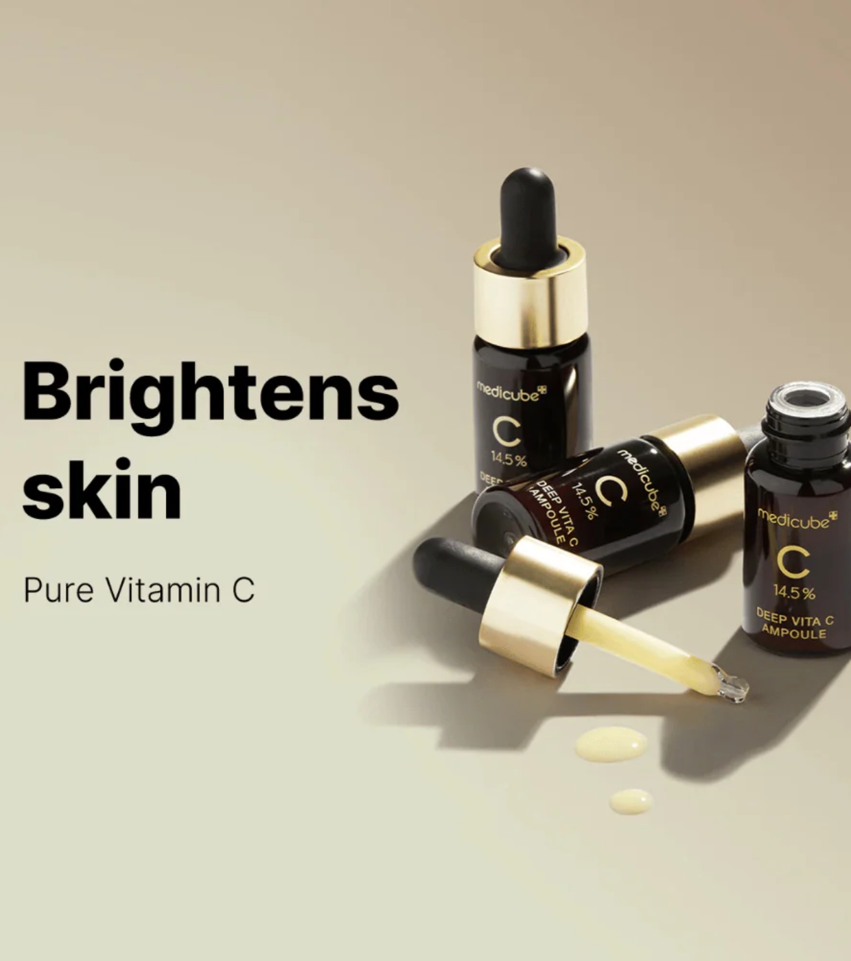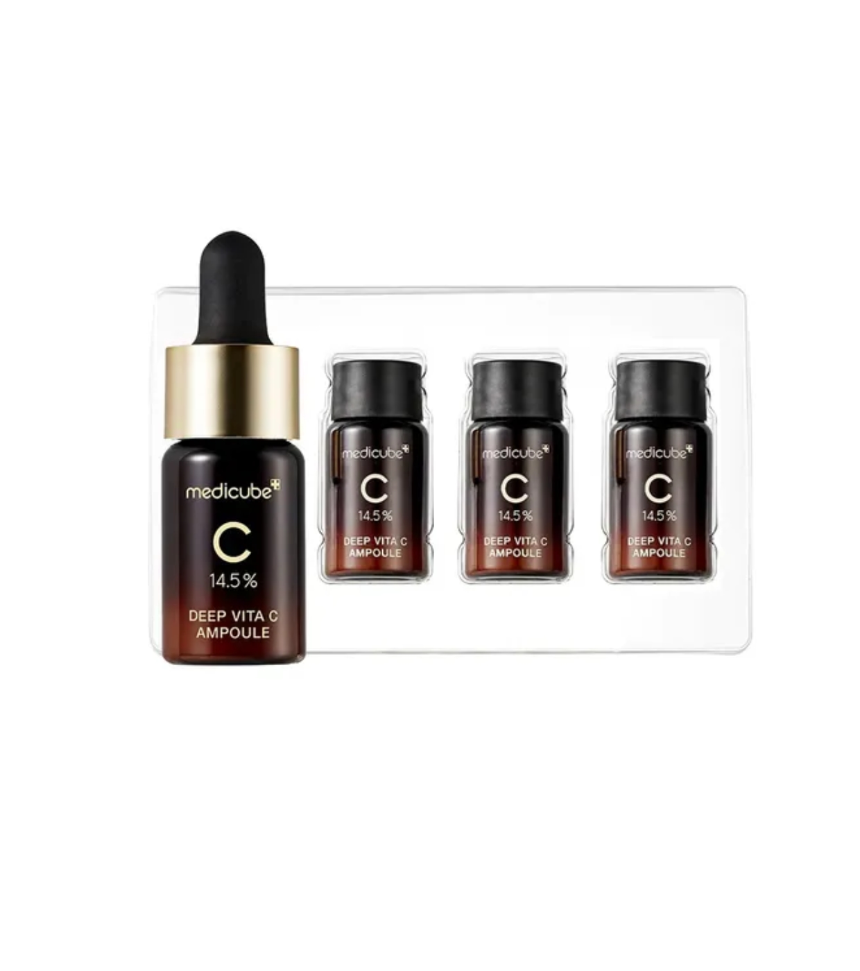 Le fiale Medicube Deep Vita C sono potenti fiale illuminanti e anti-invecchiamento formulate con il 14,5% di vitamina C pura (acido ascorbico) per ridurre macchie scure, iperpigmentazione e tono della pelle spento.