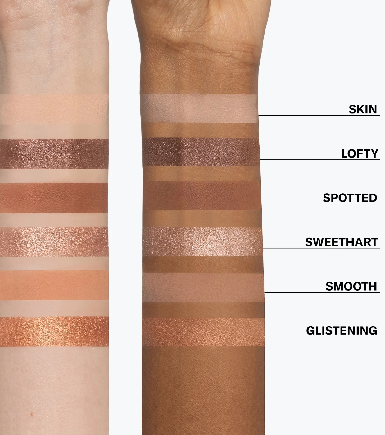 Le sue texture innovative e ultra morbide combinano finiture opache, metalliche e luminose, consentendo di creare look nella gamma nude: dal trucco naturale e sofisticato per tutti i giorni, a opzioni più intense e definite.