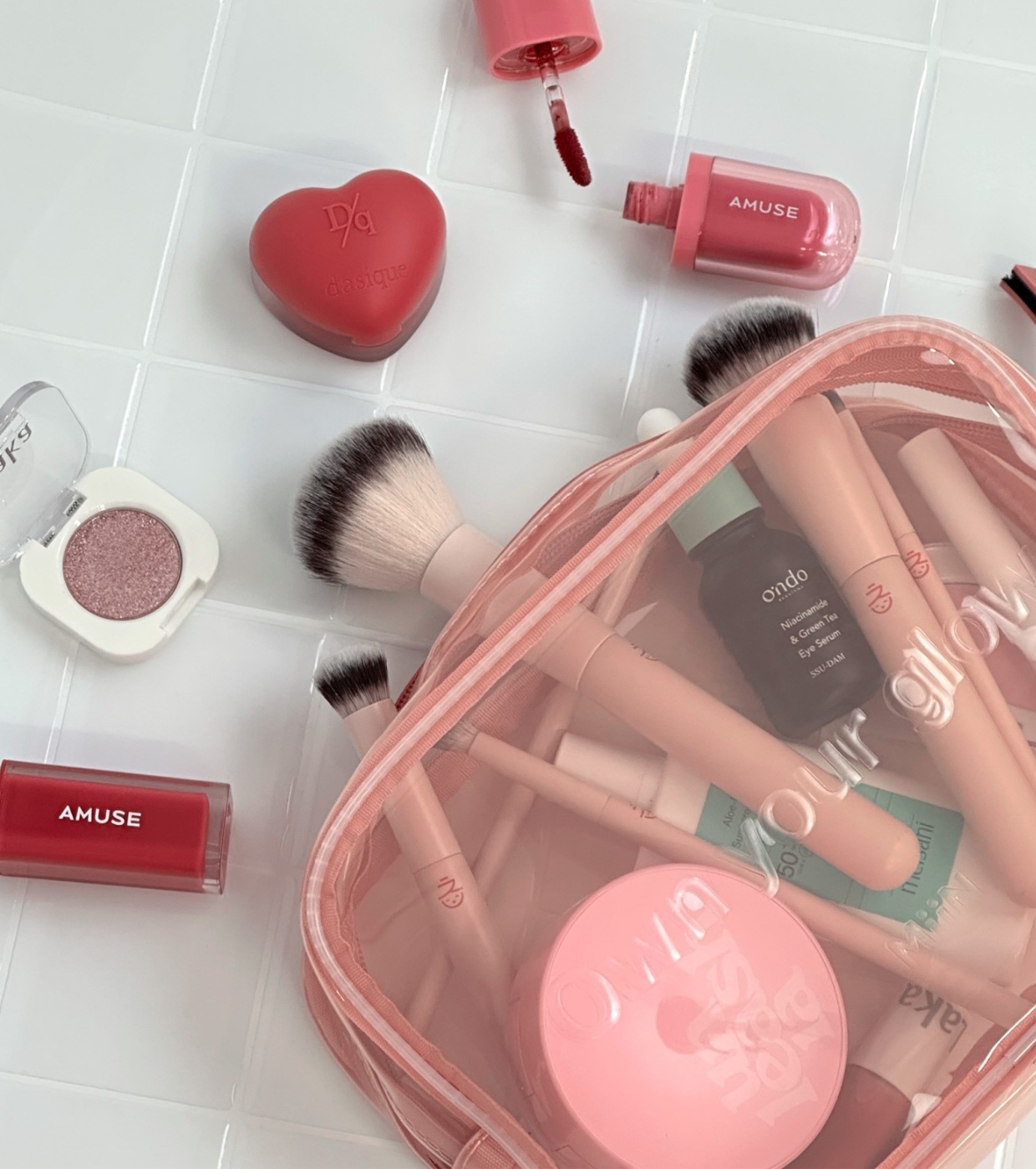 Ti presentiamo la tua nuova ossessione beauty: la Dewy Pouch di MiiN , un accessorio rosa e trasparente ideale per portare sempre con te i tuoi cosmetici coreani essenziali.