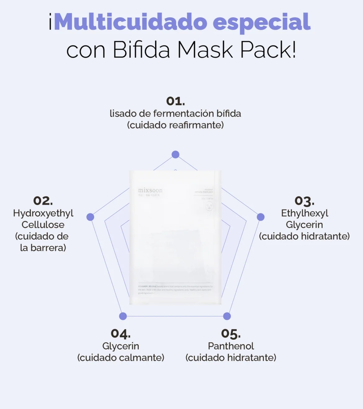 Bifida Mask di mixsoon è una maschera viso intensiva formulata per idratare, lenire e riparare la pelle sensibile, irritata o spenta.