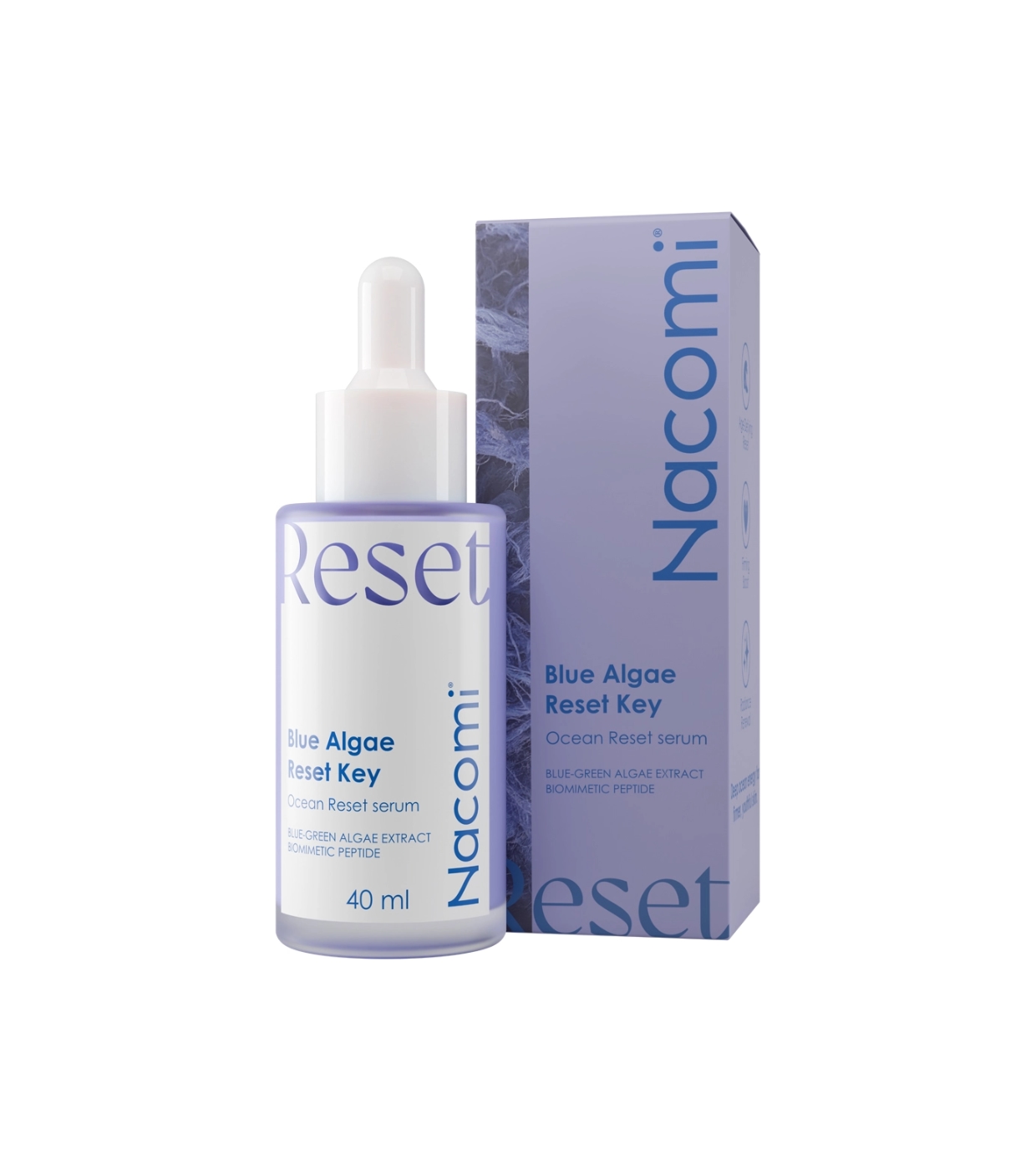 Il siero rinnovante Blue Algae Reset Key di Nacomi agisce sia in superficie che in profondità, supportando i processi naturali di rinnovamento per una pelle più soda, elastica e rivitalizzata.