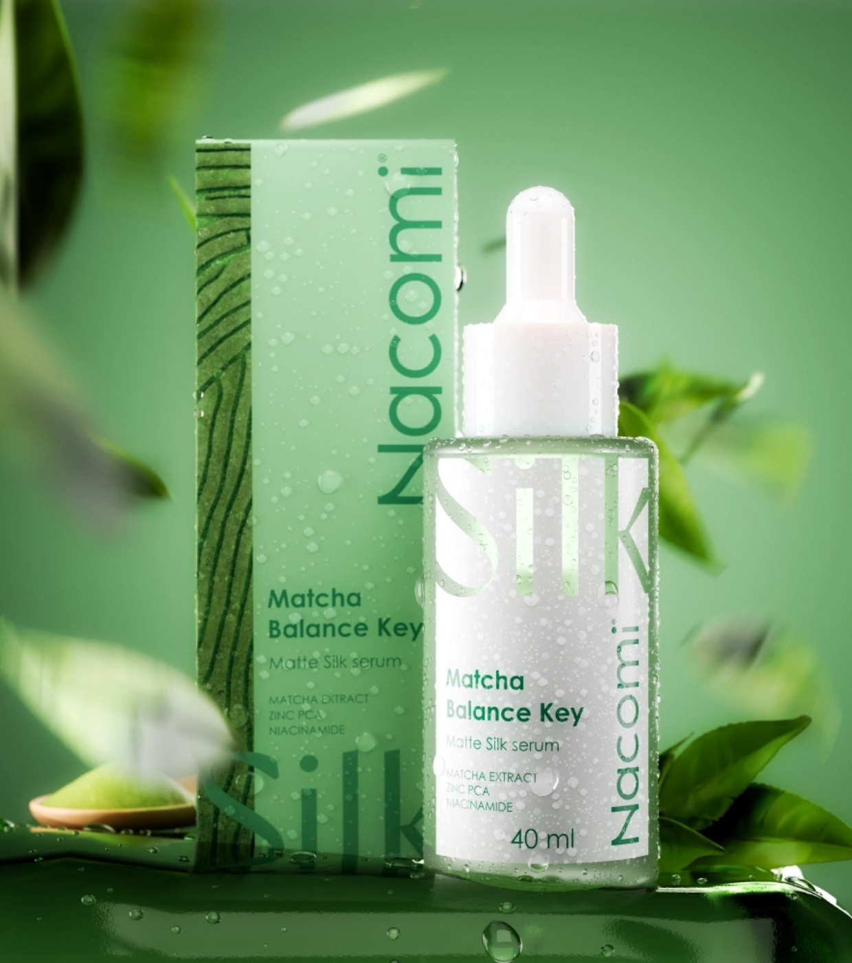 Il siero opacizzante Matcha Balance Key di Nacomi ha una formula riequilibrante che combina principi attivi purificanti e protettivi per detergere e regolare la pelle senza dare la sensazione di tensione.