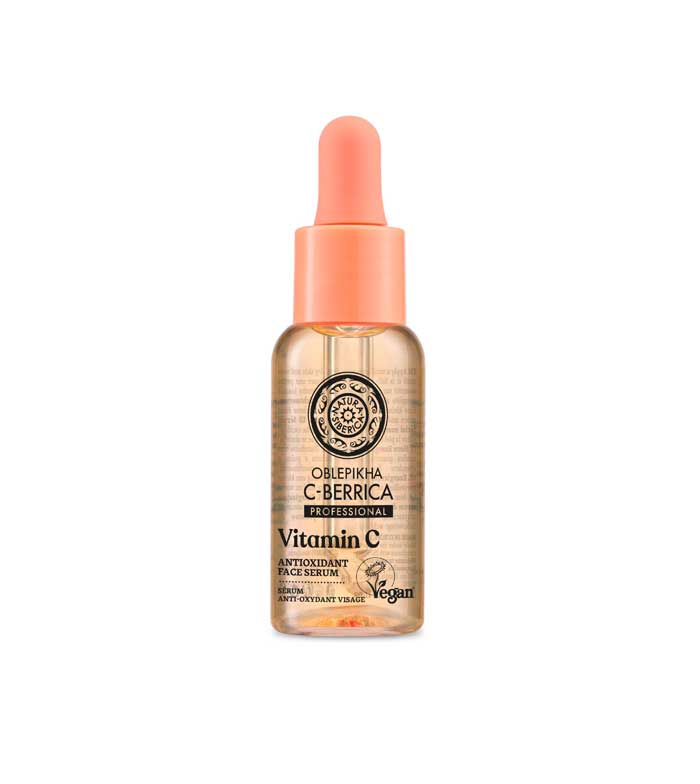 Oblepikha C-Berrica Antioxidant Face Serum (30ml): Aqua, Glycerin, Niacinamide, Panthenol, Hippophae Rhamnoides Fruit WaterWH H, Sodium Ascorbyl Phosphate, Citrus Limon Fruit Extract*, Lophanthus Anisatus Extract*, Agrostis Sibirica Extract*, Aquilegia Sibirica Flower/Leaf/Stem ExtractWH, Schisandra Chinensis ExtractWH, Dasiphora Fruticosa Extract*, Retinyl Palmitate, Sodium Hyaluronate, Tocopheryl Acetate, Hydroxyethylcellulose, Caprylyl/Capryl Glucoside, Sodium Cocoyl Glutamate, Glyceryl Caprylate, Polyglyceryl-6 Oleate, Sodium Surfactin, Citric Acid, Benzyl Alcohol, Ethylhexylglycerin, Sodium Benzoate, Potassium Sorbate, Parfum, CI 15985, Hexyl Cinnamal, Linalool. Certified VEGAN by the Vegan Society