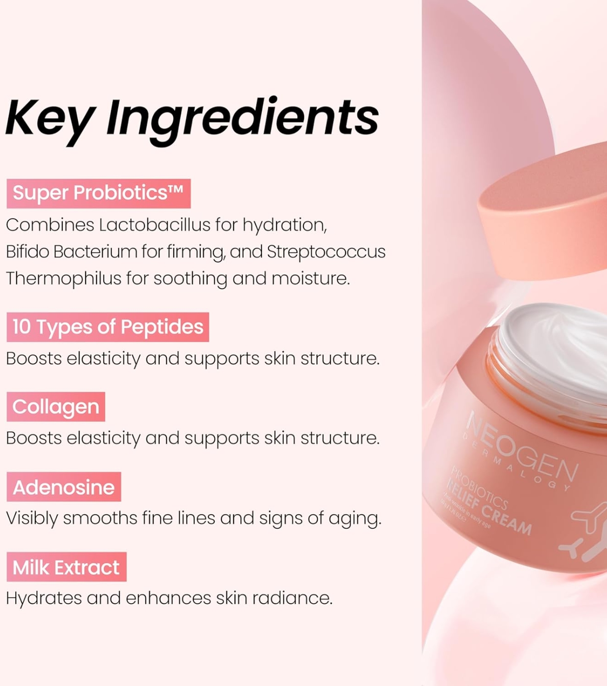 La Dermalogy Probiotics Relief Cream di Neogen è una crema viso lenitiva e idratante, formulata appositamente per pelli secche, sensibili o reattive che necessitano di rafforzare la barriera cutanea e ritrovare l'equilibrio.