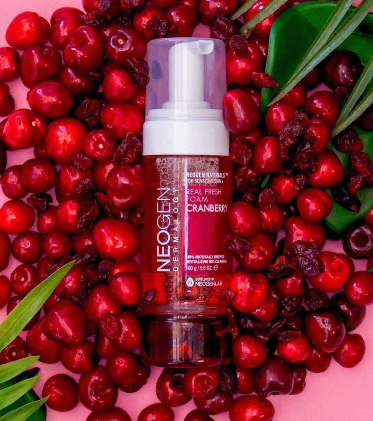 Dermalogy Real Fresh Foam Cranberry di Neogen è un detergente schiumogeno per il viso formulato appositamente per pelli secche, sensibili o reattive.