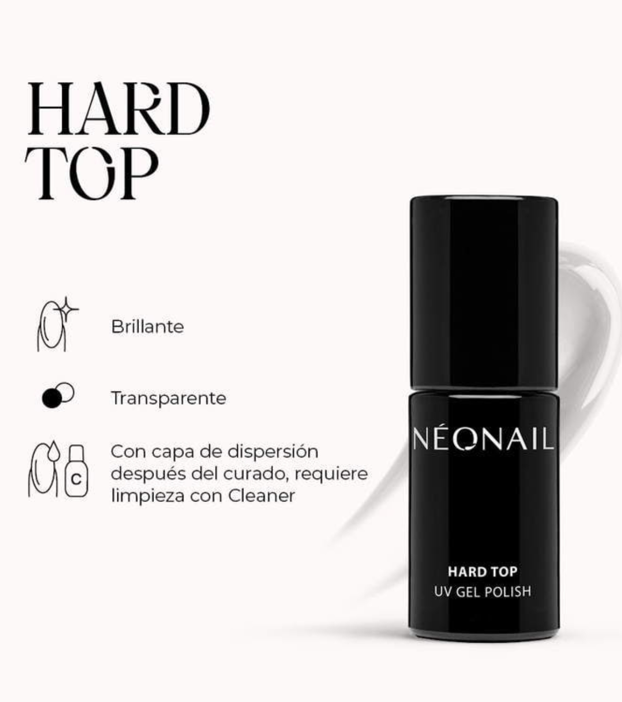Il Top hard di NeoNail è uno strato superiore semipermanente studiato per essere applicato come smalto finale sugli smalti semipermanenti colorati.
