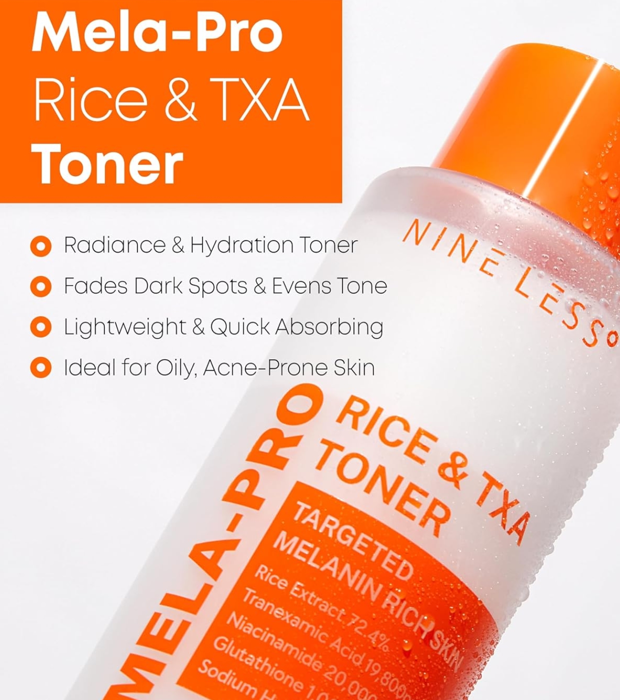 Il tonico illuminante con acqua di riso e acido tranexamico è la chiave per ottenere una pelle impeccabile, uniforme e radiosa a ogni applicazione.