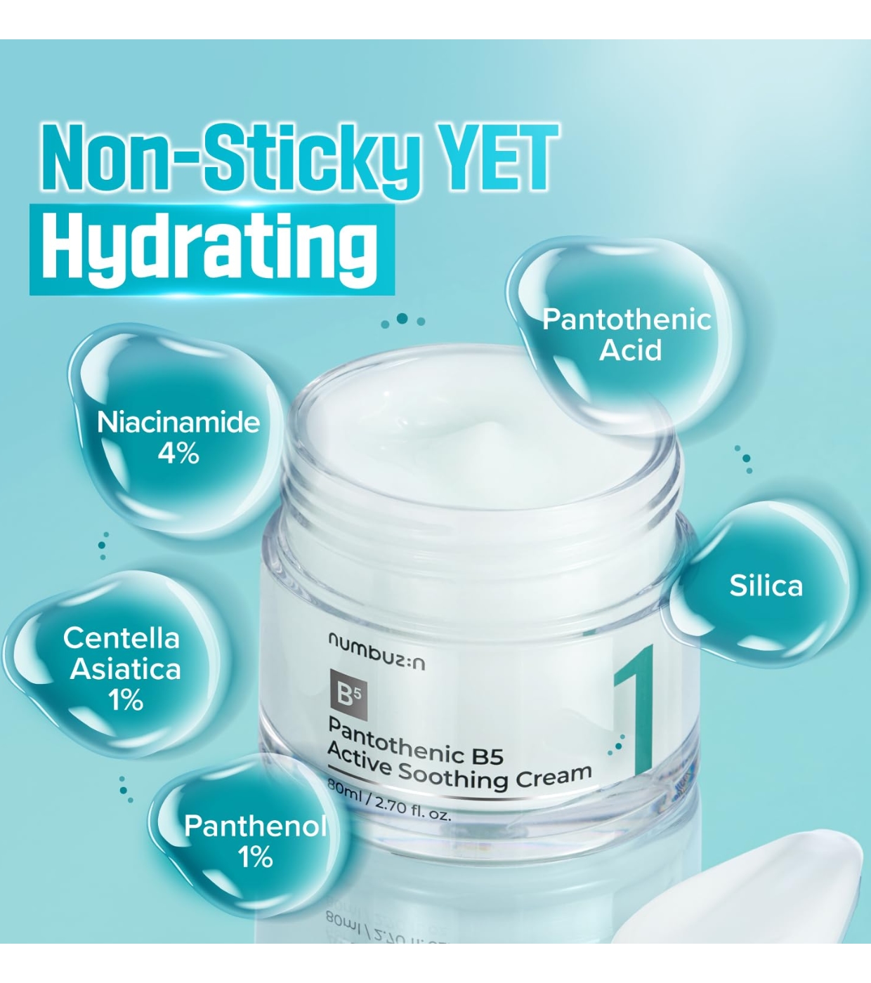Calma ed equilibra la tua pelle con questa crema lenitiva di Numbuzin , formulata con estratti di centella asiatica e foglie di tè verde, noti per le loro proprietà calmanti e antiossidanti.