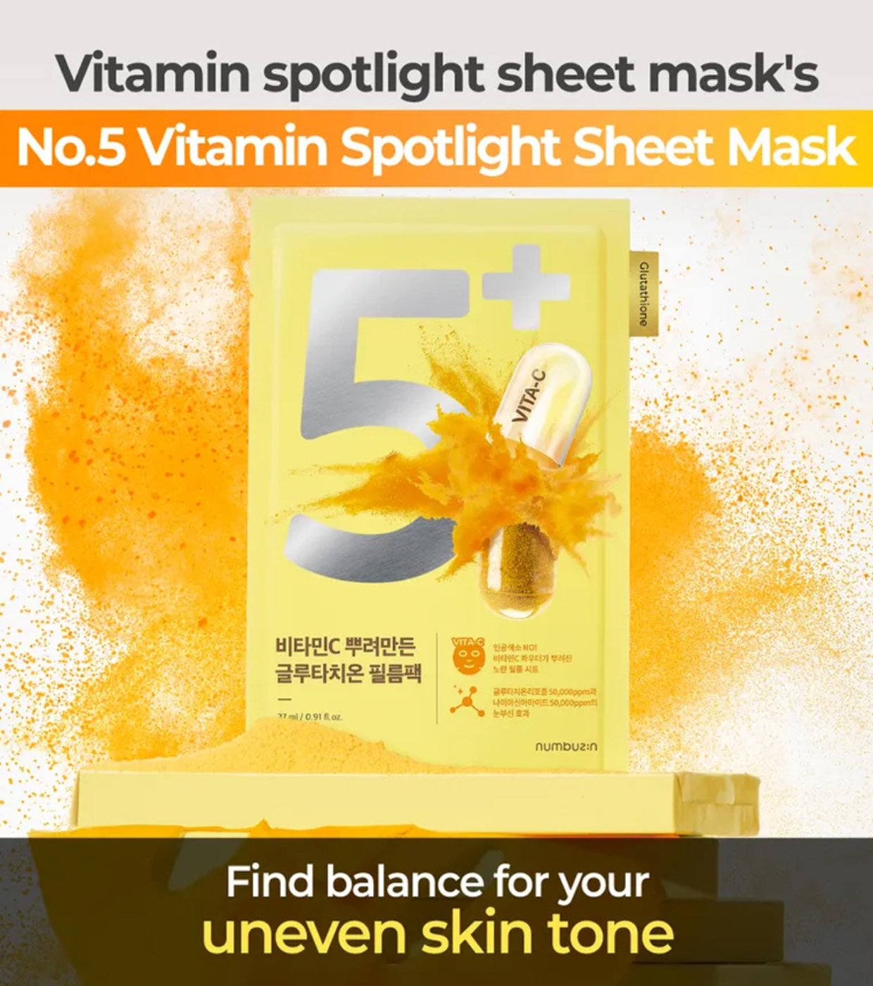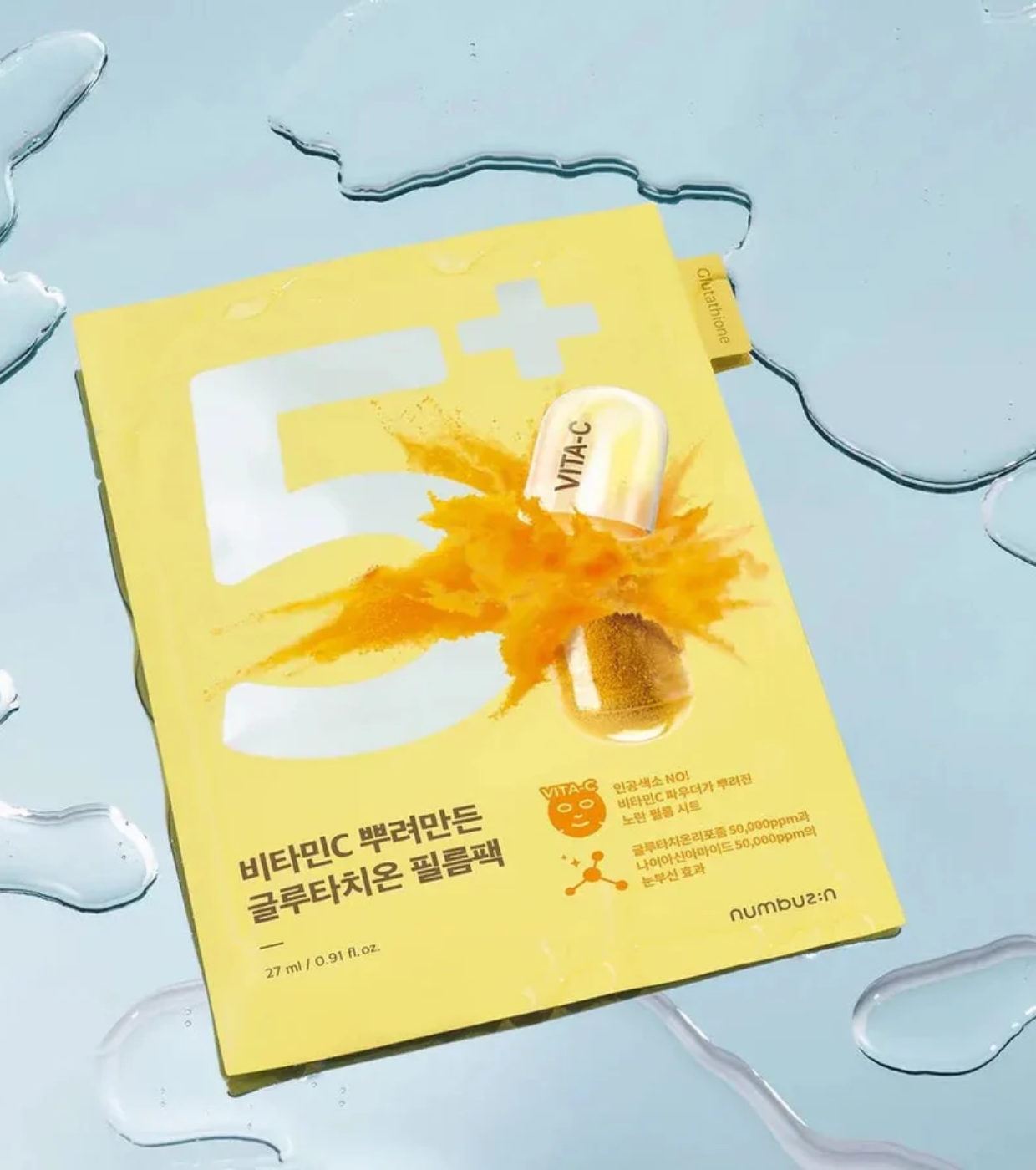 Restituisci luminosità alla tua pelle con questa maschera viso illuminante No.5+ Glutathione Vitamin Concentrated di Numbuzin in fiale, formulata con glutatione liposomiale, niacinamide e vitamina C per contrastare incarnato spento e imperfezioni.