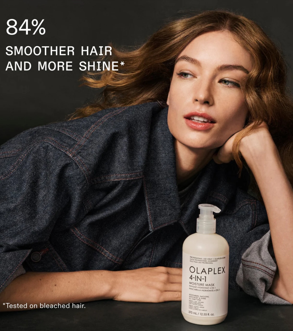 La maschera idratante 4 in 1 di Olaplex ha una formula concentrata e ricostituente che aggiunge un'idratazione intensa mentre dona lucentezza e corpo ai capelli.