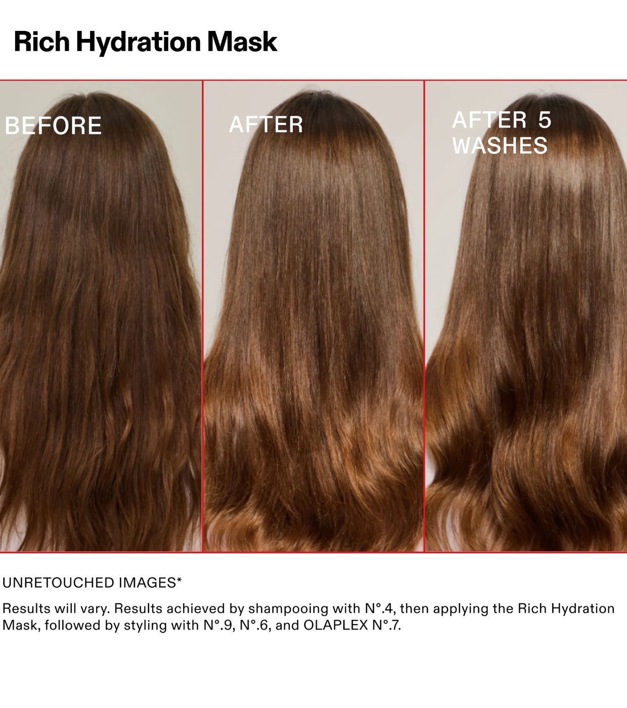 Questa maschera per capelli profondamente riparatrice e idratante di Olaplex è studiata per trattare capelli disidratati o da medi a spessi, offrendo un'idratazione intensa e una riparazione visibile fin dal primo utilizzo.