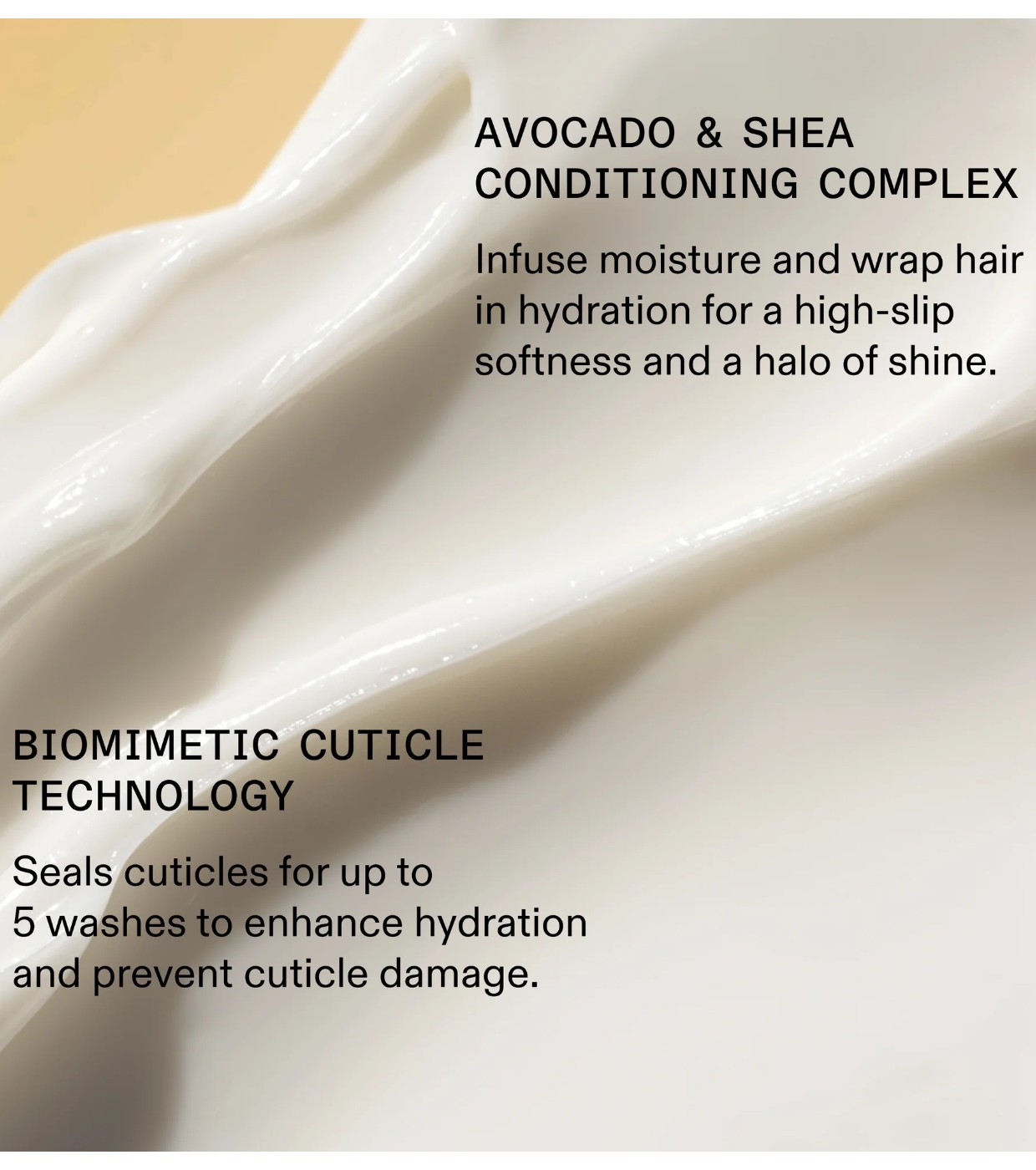 Formulato con tecnologia biomimetica delle cuticole, agisce trattenendo l'idratazione, rafforzando la fibra capillare e sigillando le cuticole fino a cinque lavaggi, prevenendo così la perdita di idratazione.