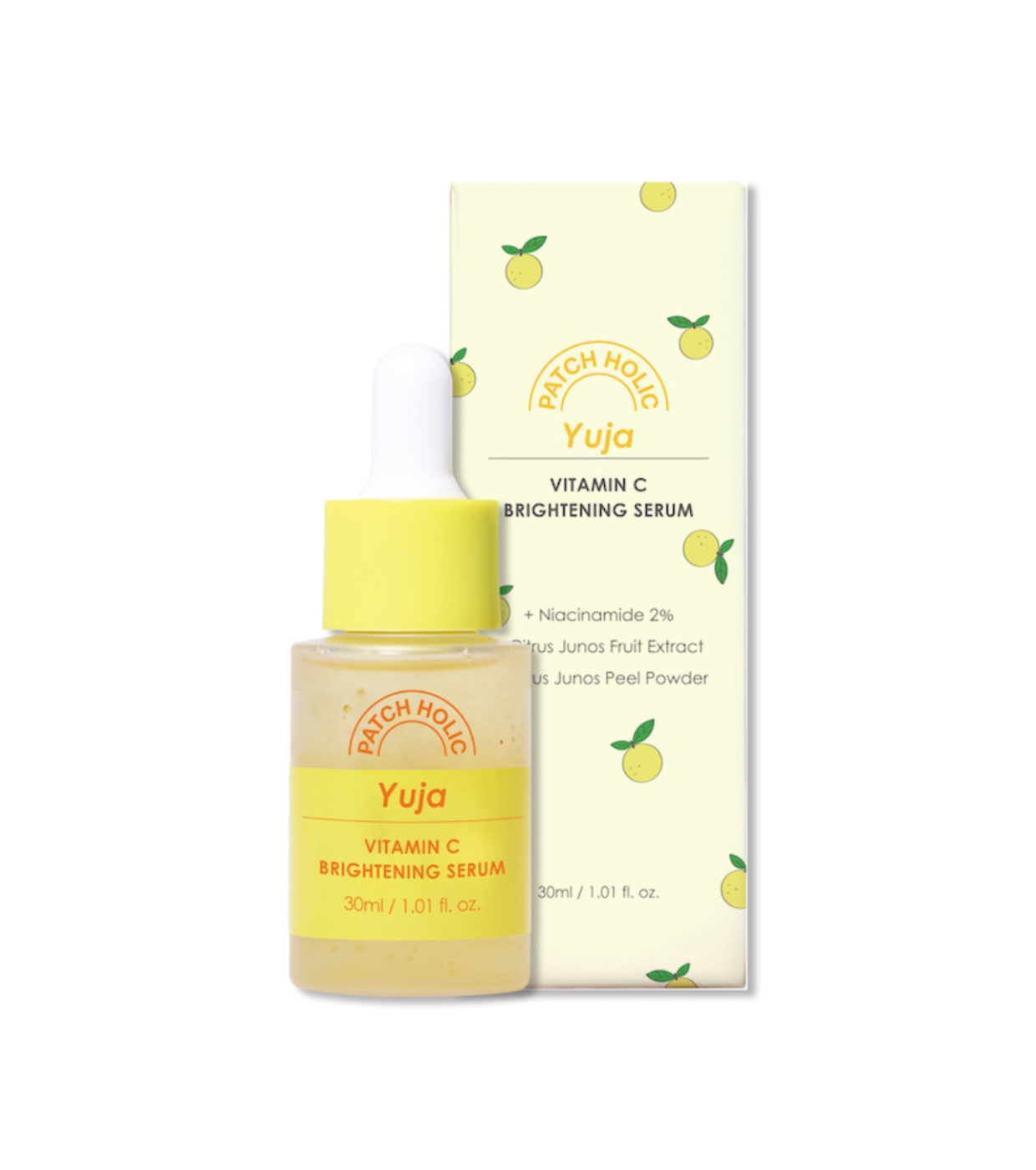 Trasforma la tua pelle con questo siero viso rivitalizzante Yuja Vitamin C Brightening Serum di Patch Holic , formulato con yuja, un frutto asiatico ricco di vitamina C, che dona luminosità e vitalità alla pelle.