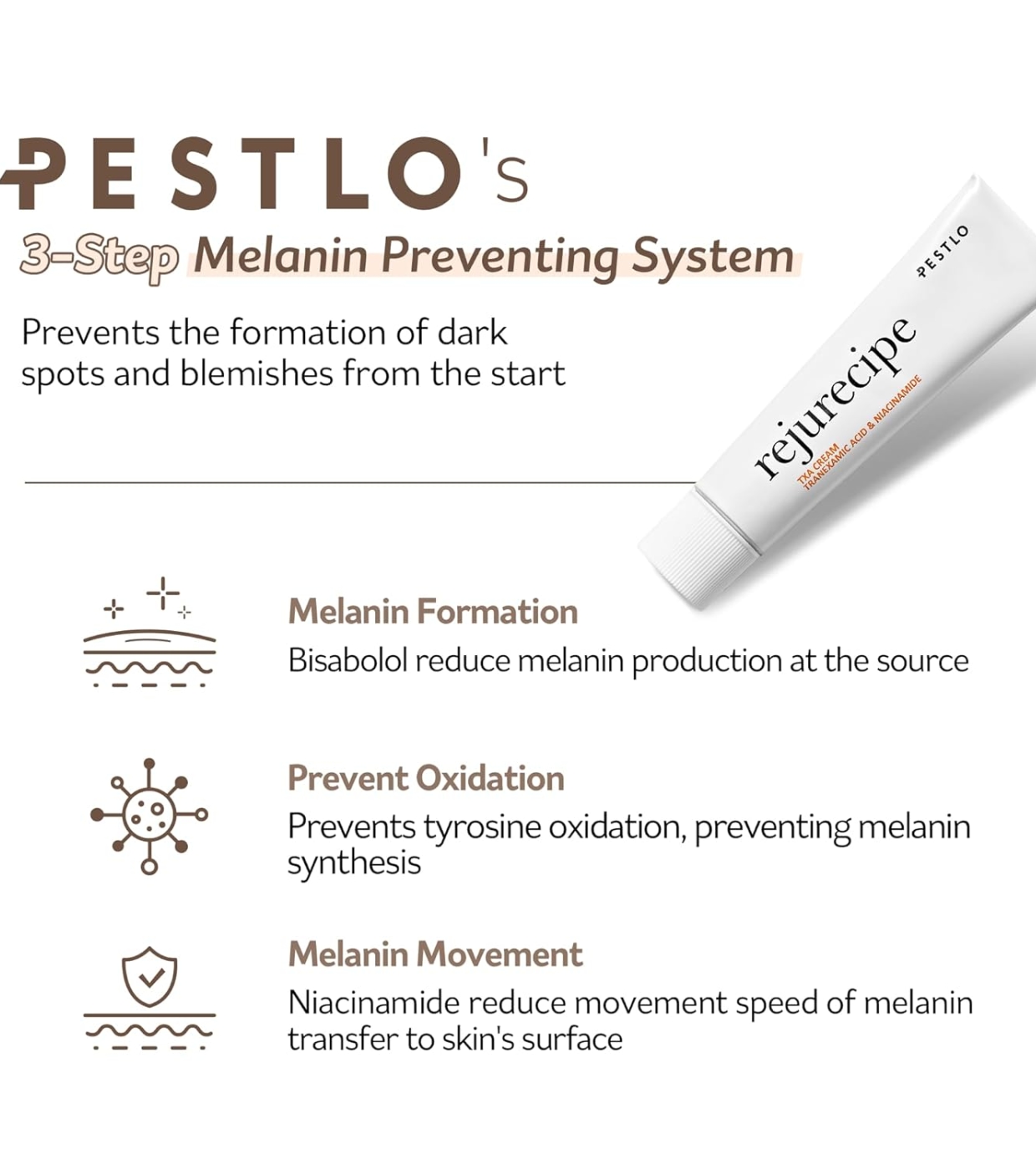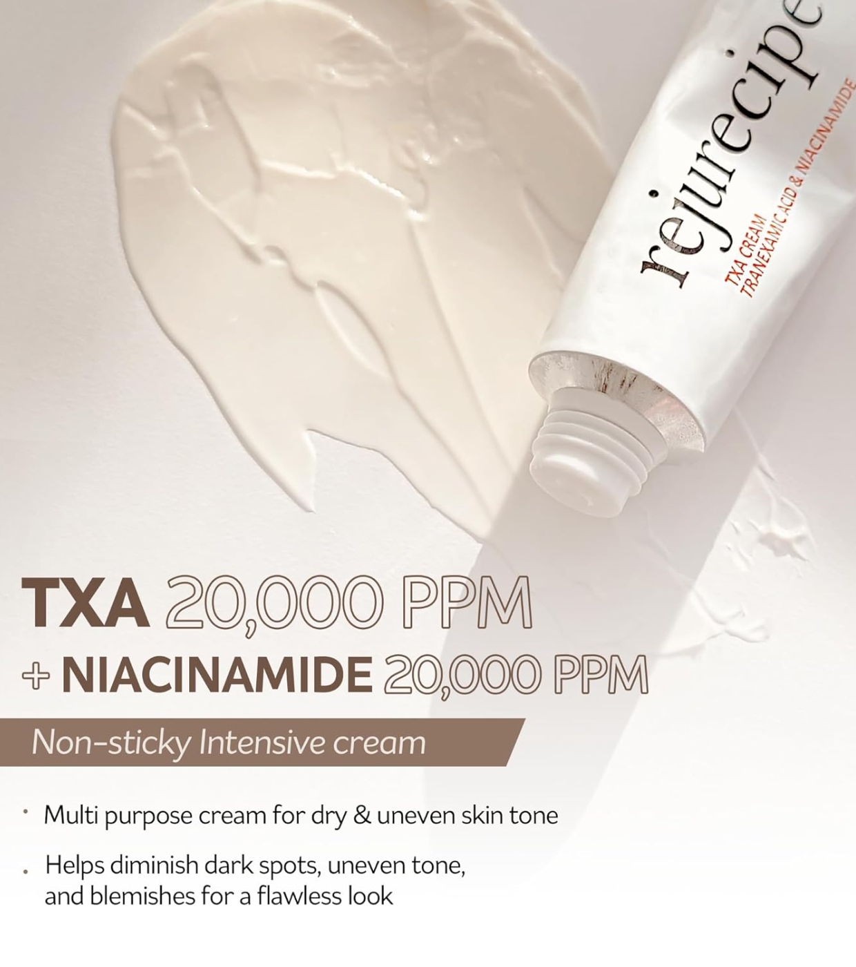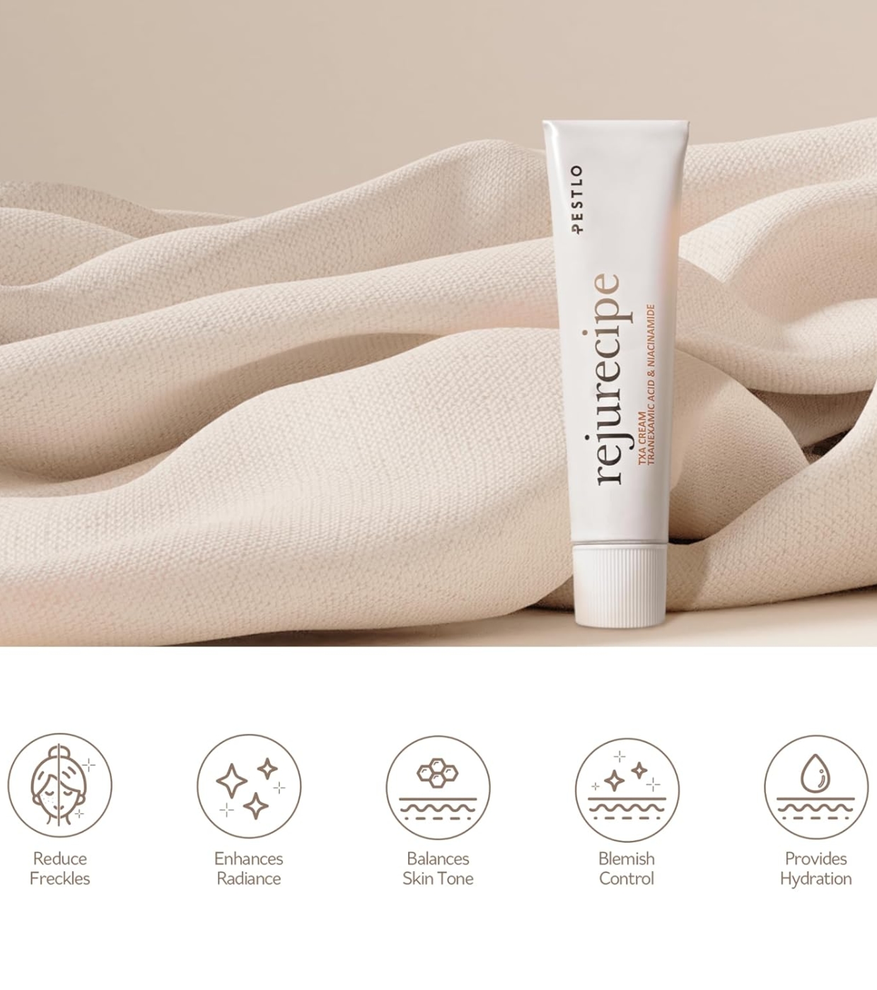 La crema Rejurecipe TXA Cream di PESTLO è una crema viso illuminante e idratante, formulata per migliorare l'uniformità del tono della pelle, donarle luminosità e mantenerla equilibrata e confortevole, anche sulle pelli sensibili.