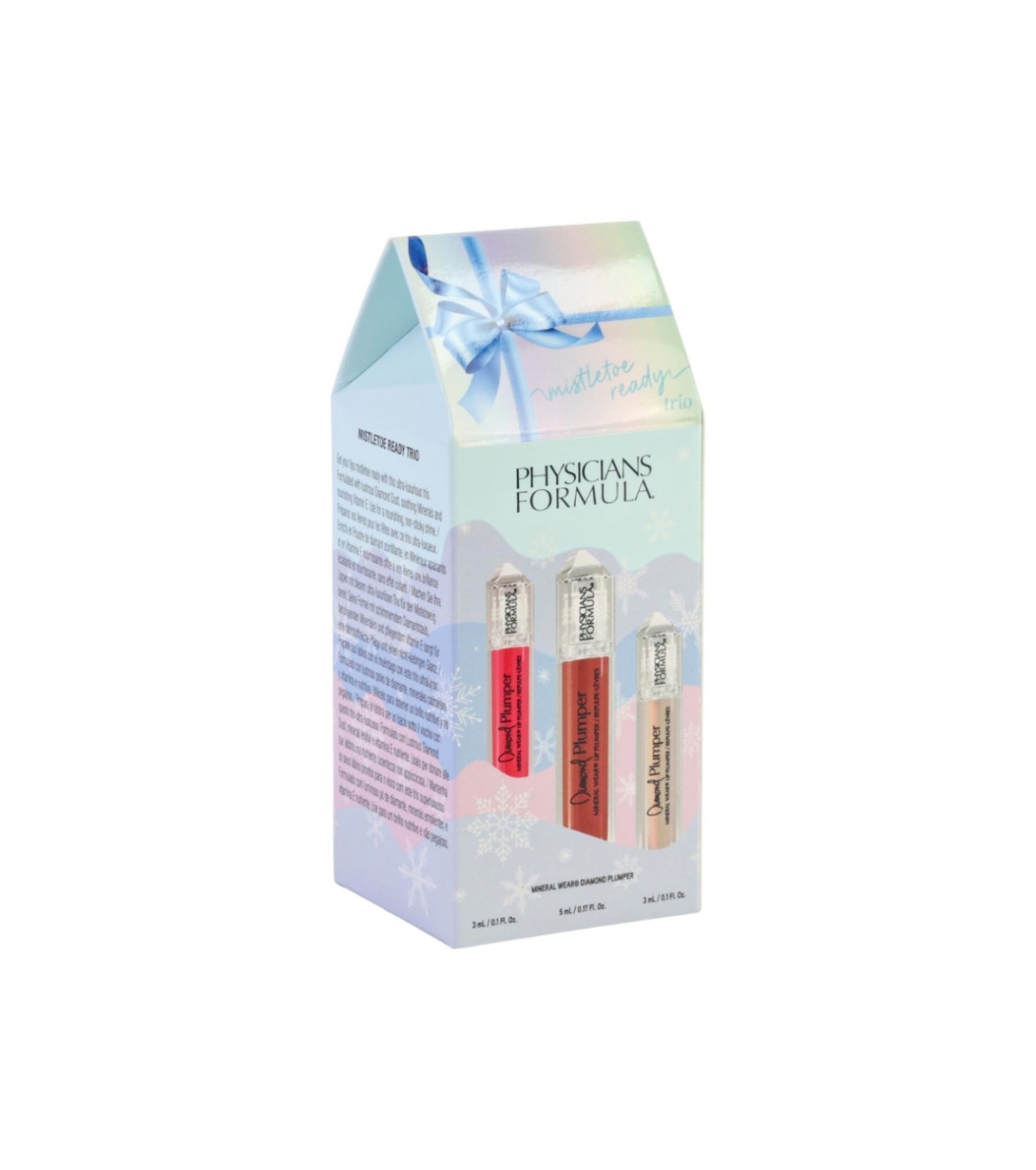 Il set Mistletoe Ready Set Physicians Formula riunisce tre lucidalabbra Diamond Plumper, una collezione pensata per offrire volume, idratazione e una finitura luminosa, perfetta per ogni occasione.