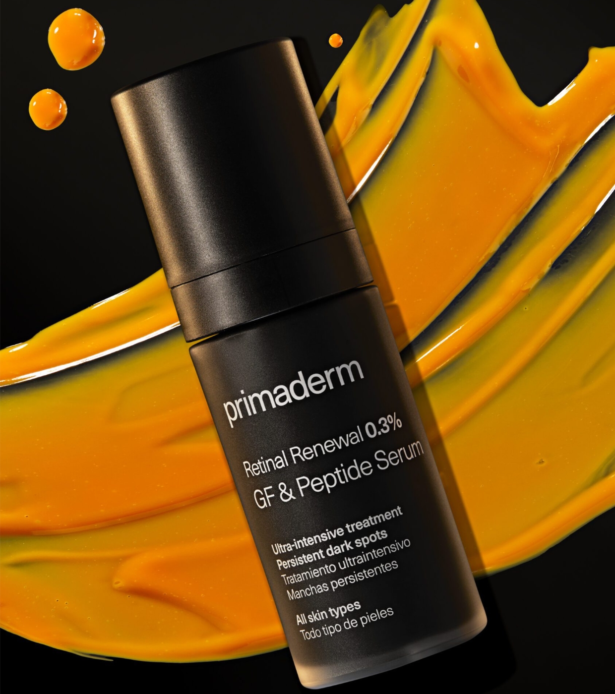 Retinal Renewal 0.3% GF & Peptide Serum di Primaderm modula in modo intelligente i meccanismi di protezione, rinnovamento e depigmentazione, offrendo una strategia terapeutica completa per ringiovanire visibilmente la pelle.