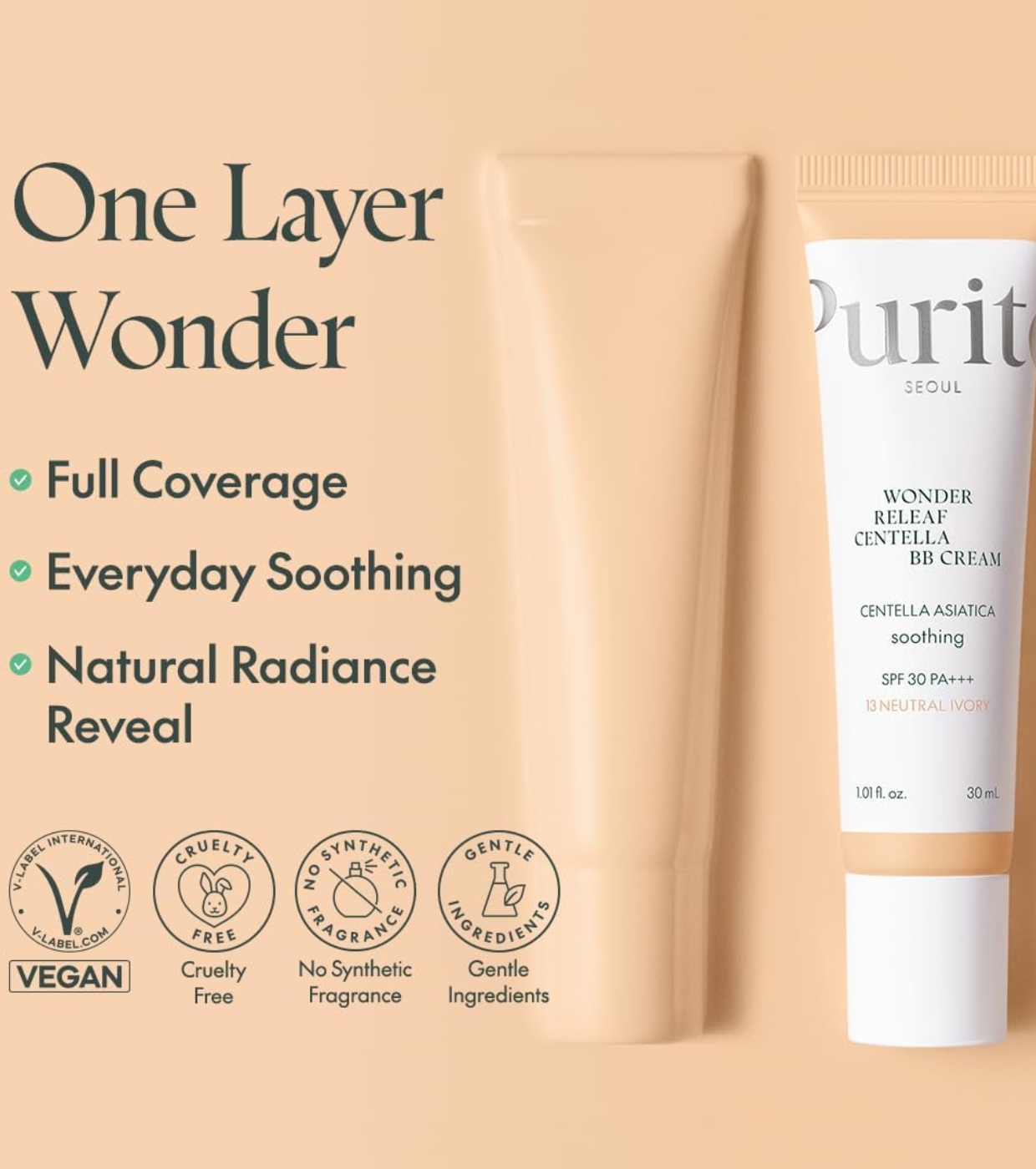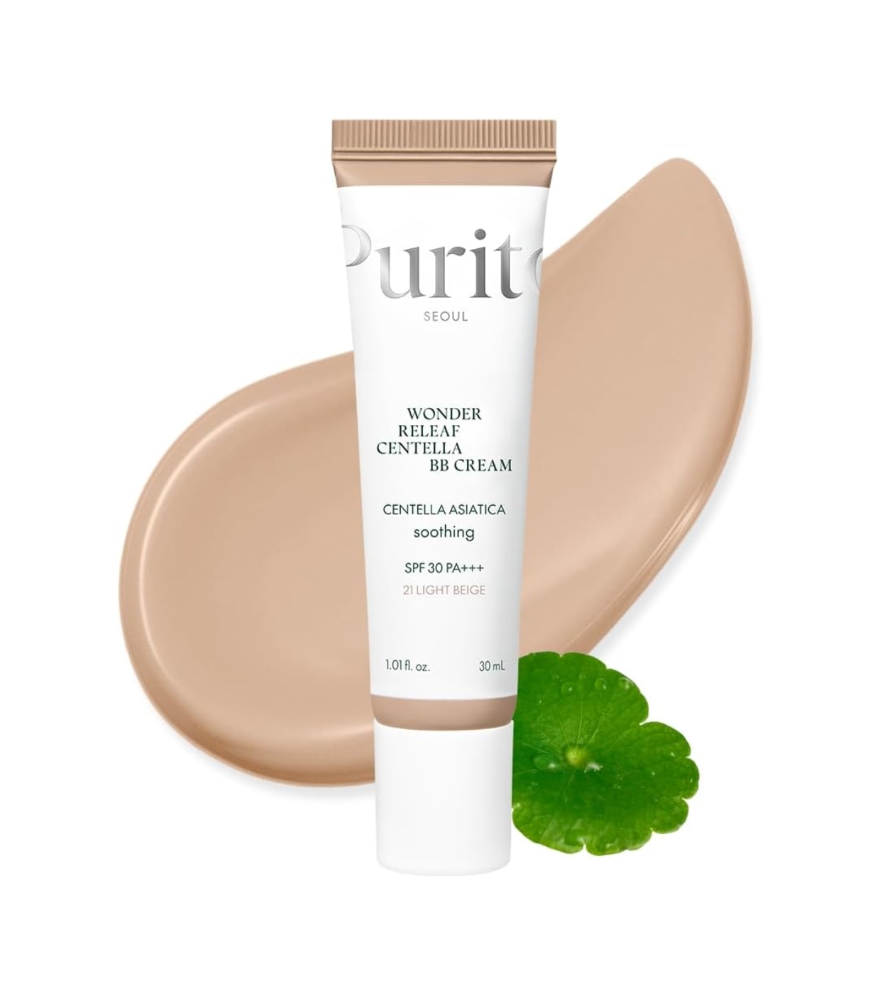 Uniforma il tono della tua pelle, nascondi le imperfezioni e proteggila dal sole con questa BB Cream Wonder Releaf Centella SPF30 di Purito .