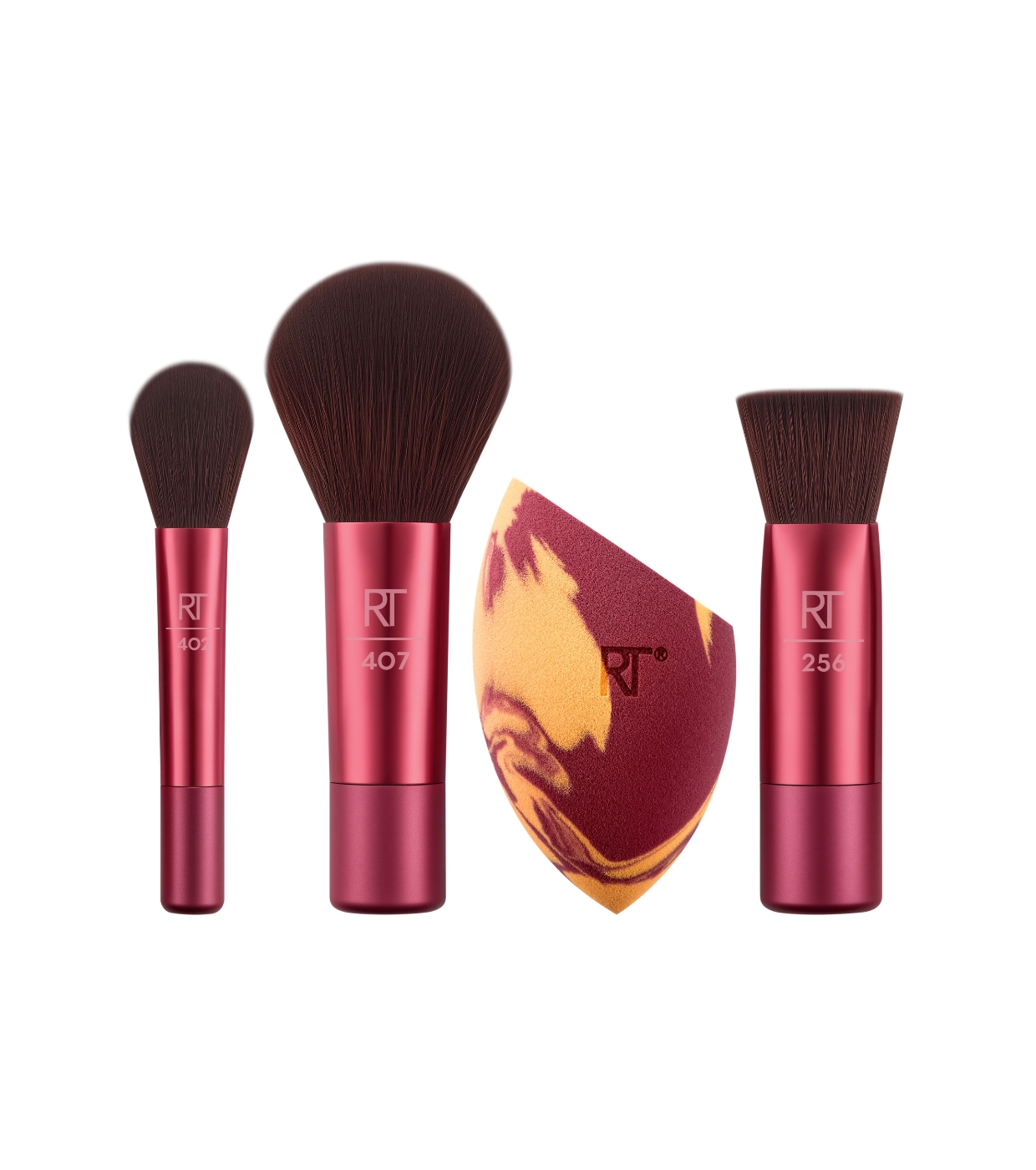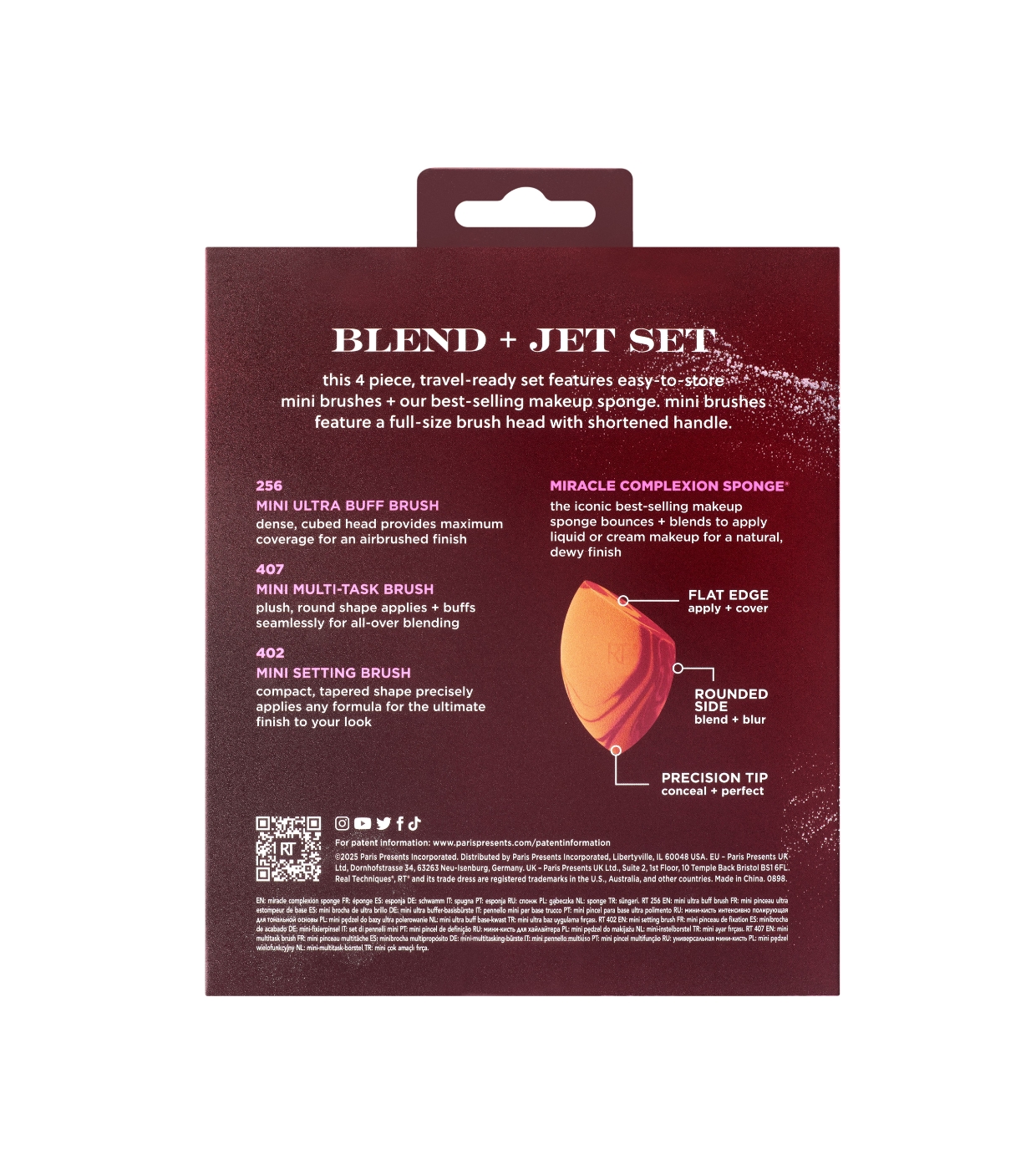 Porta sempre con te i tuoi prodotti essenziali per il trucco con questo set da 4 pezzi Blend + Jet Set di Real Techniques in formato mini, pensato per semplificare la tua routine ovunque.